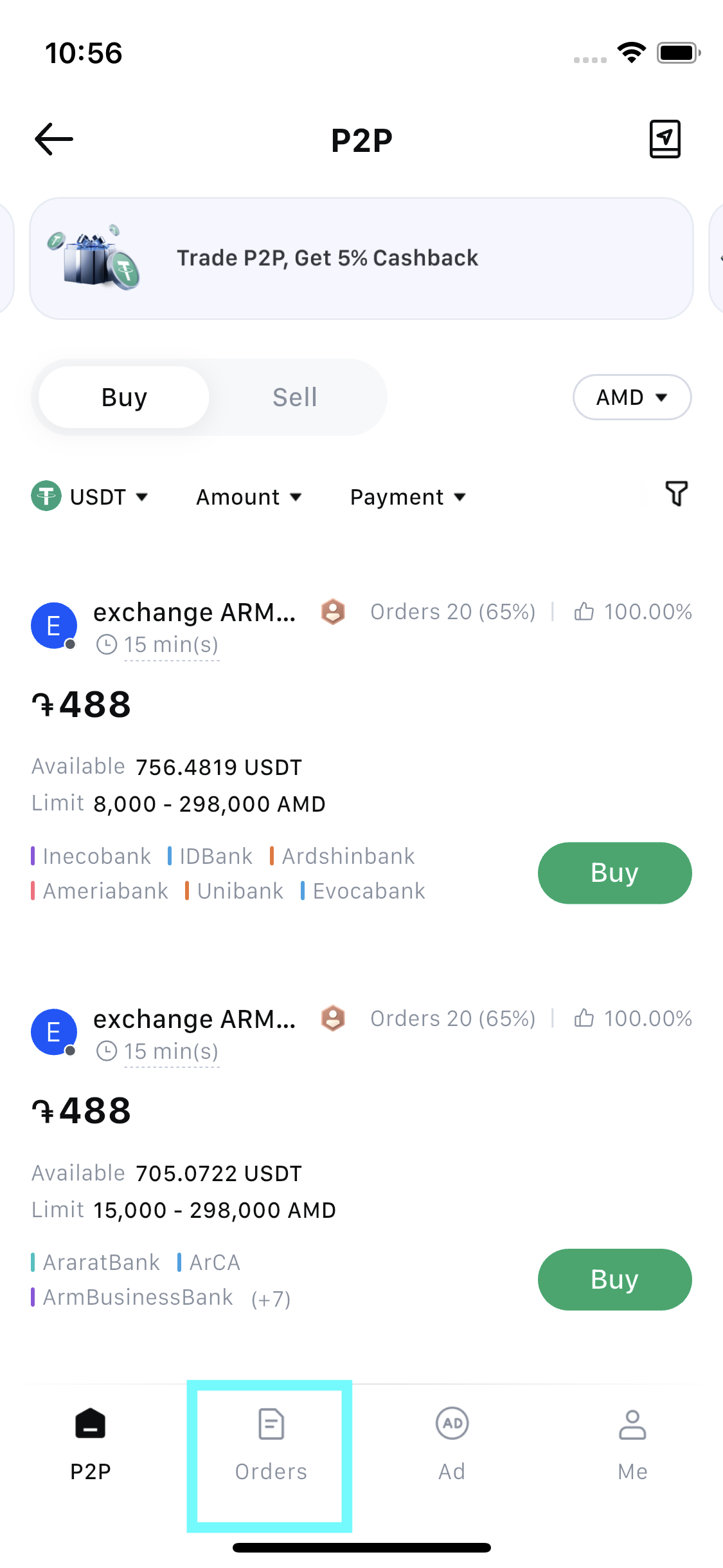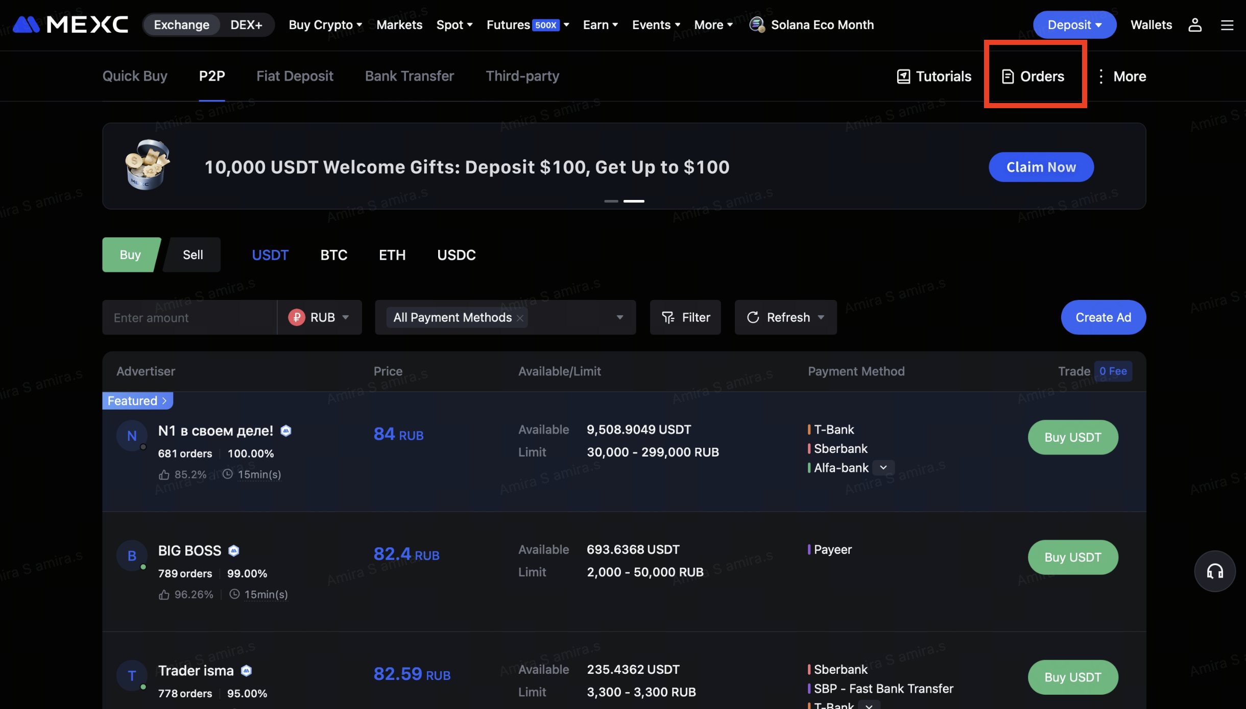 1. Go to the P2P trading page
