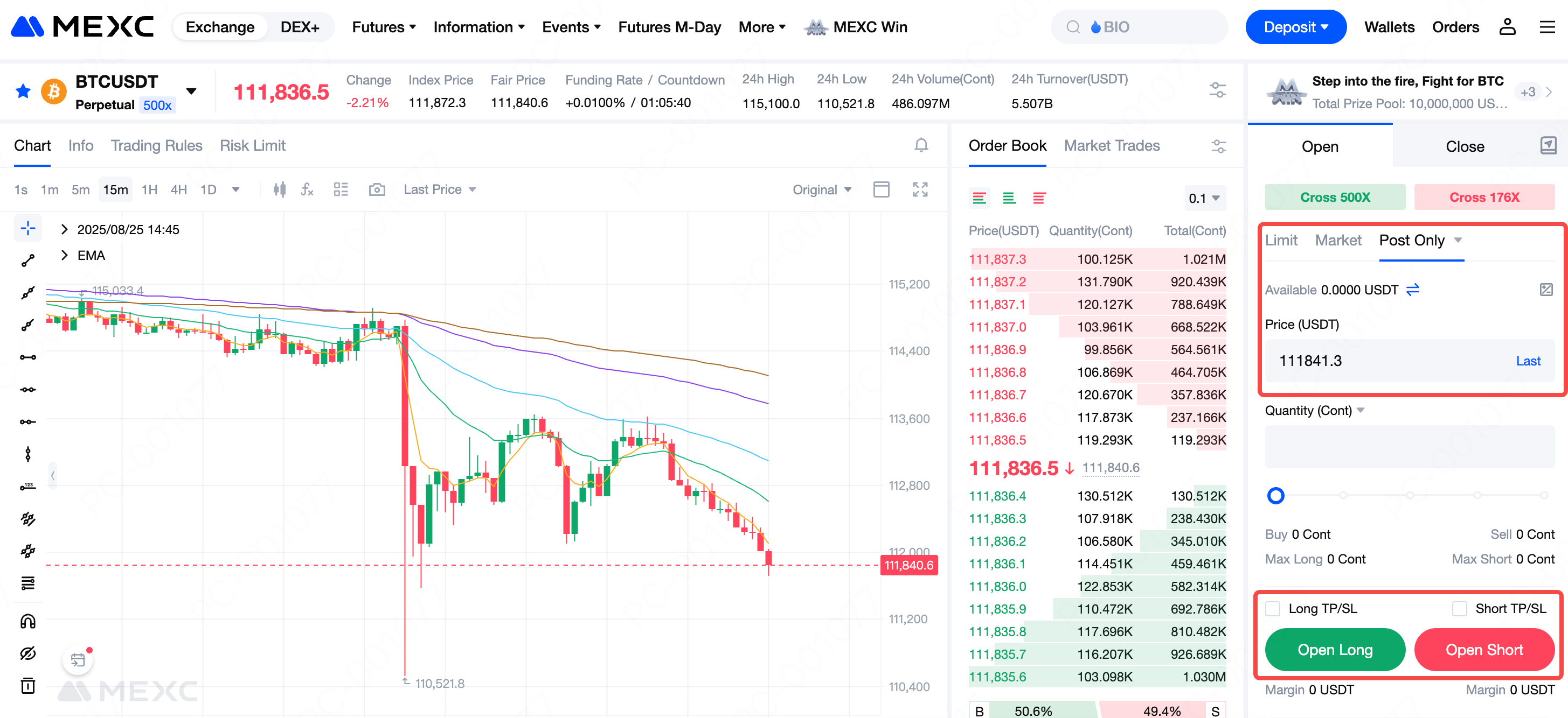 Ventajas: En el trading de futuros MEXC, las órdenes de maker tienen una tarifa mucho menor que las órdenes de taker. Usar la opción Post Only garantiza que siempre pagarás tarifas del 0%.