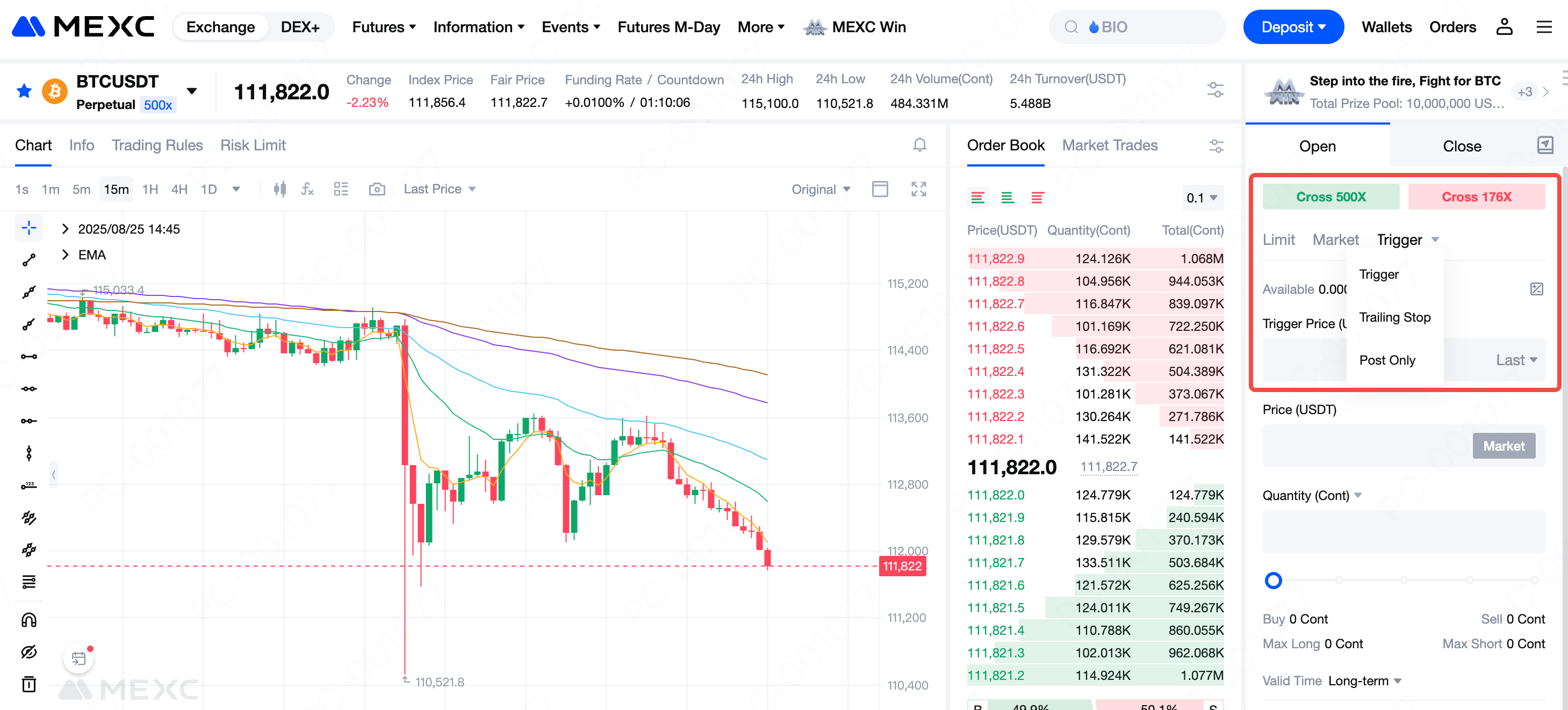 MEXC ofrece cinco tipos de órdenes para operar con futuros: orden de límite, orden de mercado, orden de activación, orden trailing stop y orden de post only. Cada una tiene características distintas, y los operadores pueden elegir según sus necesidades y objetivos de operación.