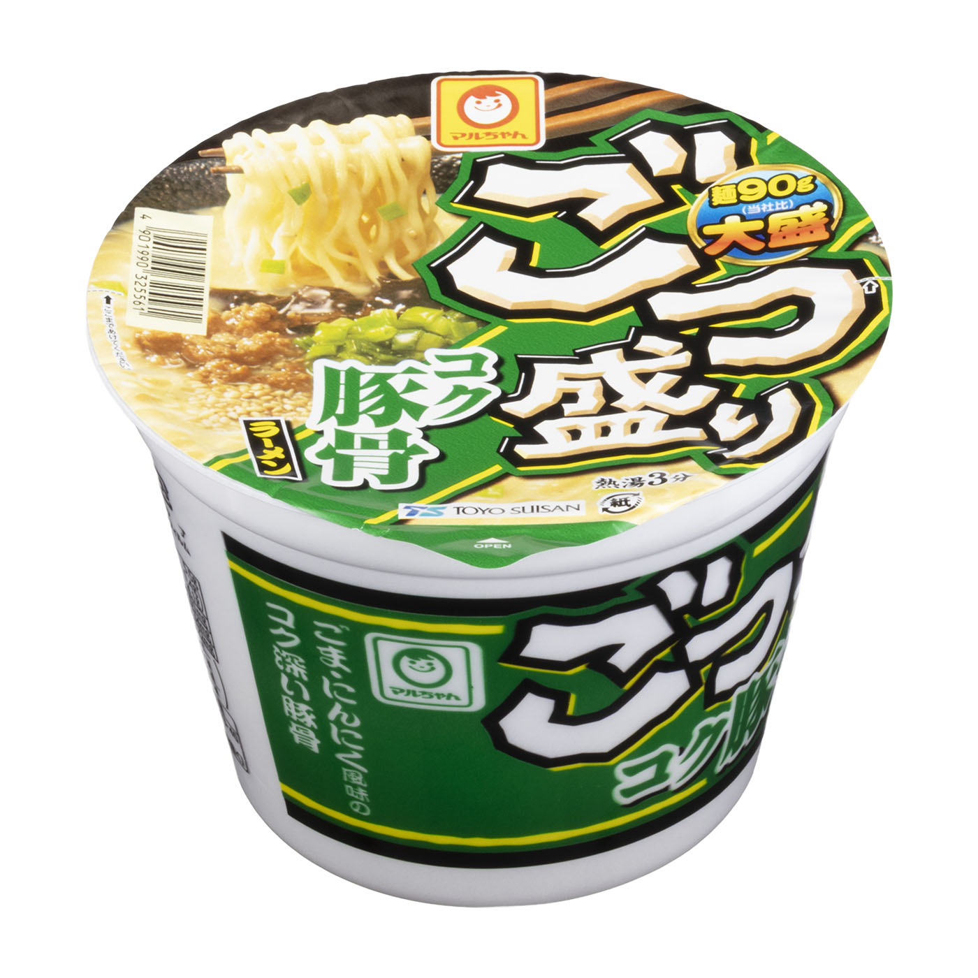 東洋水産の「ごつ盛り コク豚骨ラーメン」は、まろやかでコクのある豚骨スープとフライ麺が特徴のカップラーメンです。ボリュームを重視したシリーズの1種で、具材にはごま、味付鶏挽肉、きくらげ、ねぎが含まれています。おいしさの検証では、濃厚なスープと具材の食感が高く評価されました。モニターからも「スープがクリーミーで満足感がある」「きくらげのコリコリとした食感がよい」といった声が挙がっています。スープと麺のバランスも良好で、白胡麻の風味がアクセントになった味わいが魅力です。ボリュームを重視したい人や濃厚な味わいの豚骨スープを求めている人におすすめの商品といえます。