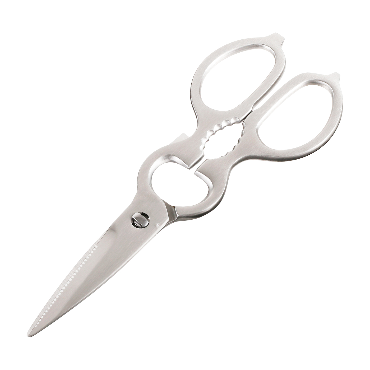 生活雑貨・日用品の企画・開発を行う、コモライフの「ステンレス製キッチンばさみ 390433」。オールステンレス製のキッチンバサミで、切りやすさと手入れのしやすさを兼ねた商品です。切れ味のよさの検証では、すべりやすい鶏モモ肉の表面をしっかり捉えてカットできる点がモニターから評価されました。鶏モモ肉は「身も皮も逃さず1回でカットできた」「軽い力で簡単に切れて気持ちよい」と評価され、昆布も「紙を切っているような軽さがあってサクサク切れる」「スムーズに刃が入る」と好印象。柔らかい食材も硬い食材も切りやすいでしょう。一方、刃の開閉はリズミカルに切る分には気にならないものの、大きく開こうとするとやや引っかかりを感じ、力が入りました。金属製の持ち手でクッション性はなく、長時間大きな食材をカットしようとすると疲れやすいかもしれません。刃は分解して洗えるので手入れしやすいうえ、オールステンレス製なので煮沸消毒も可能。清潔な状態を保ちやすいといえます。大きな食材を切ろうとするとやや開きにくい点は惜しいものの、調理を楽にすること間違いなしの商品といえます。