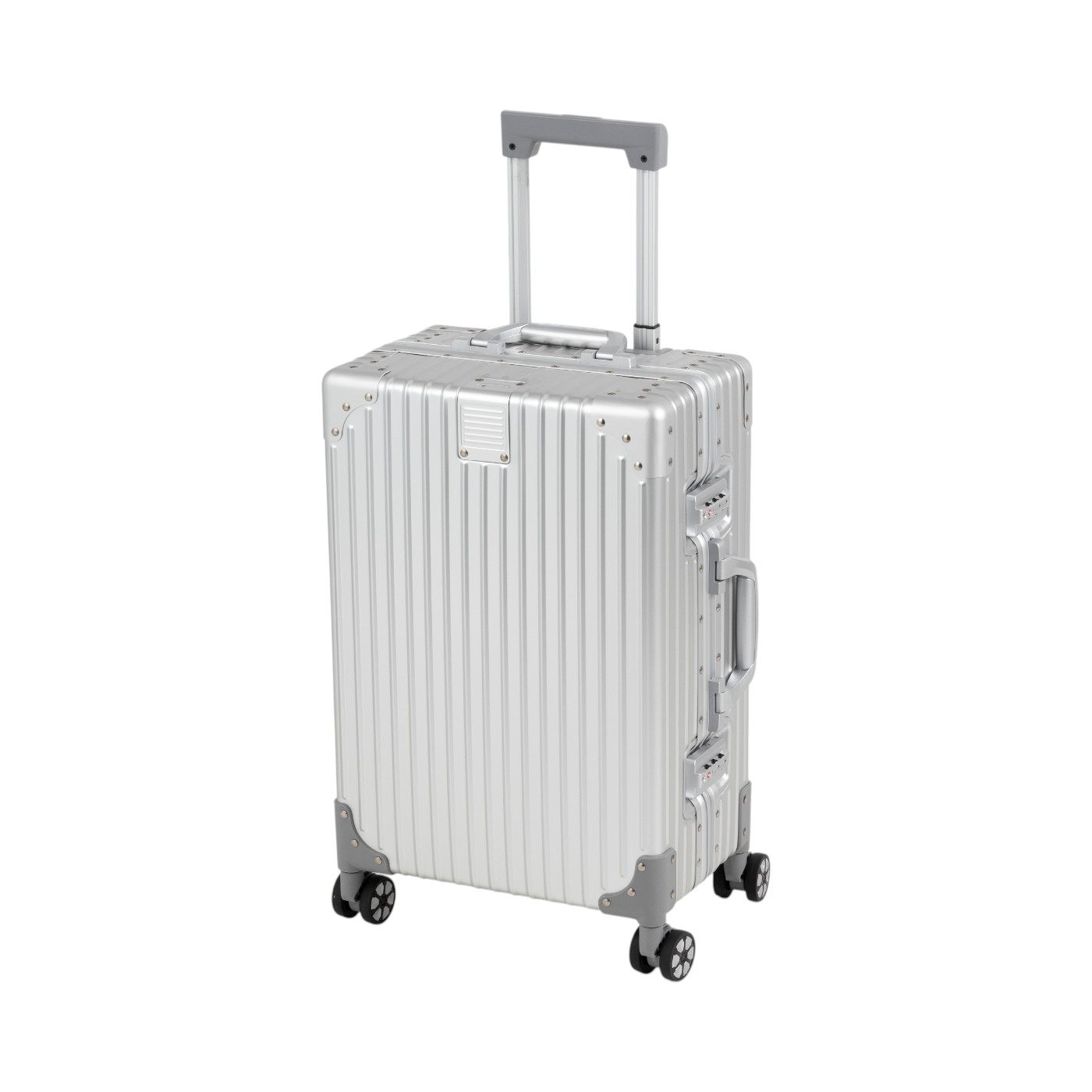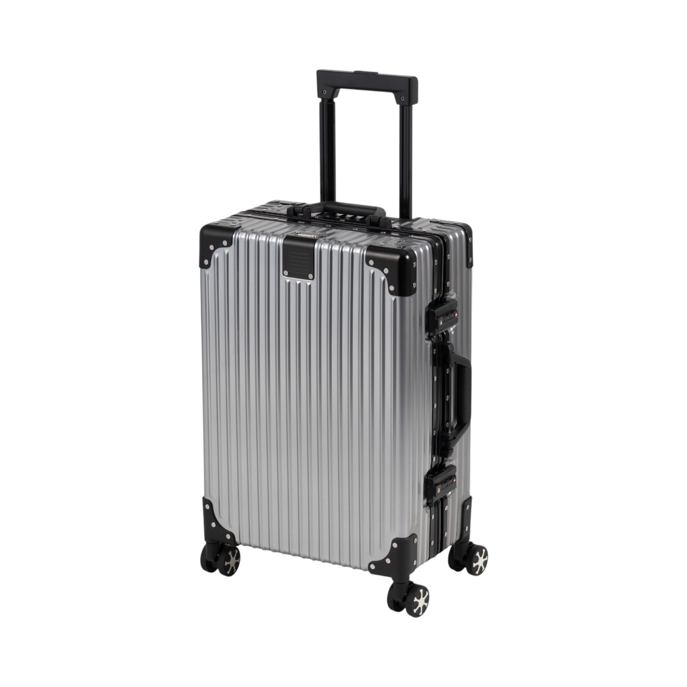 「アルミニウムボディ スーツケース」は、洋也株式会社が展開するスーツケースレーベル.OUNCEが提供するアルミ製スーツケースです。耐久性を重視したアルミフレーム採用で、軽量ながら高い収納力を実現しています。