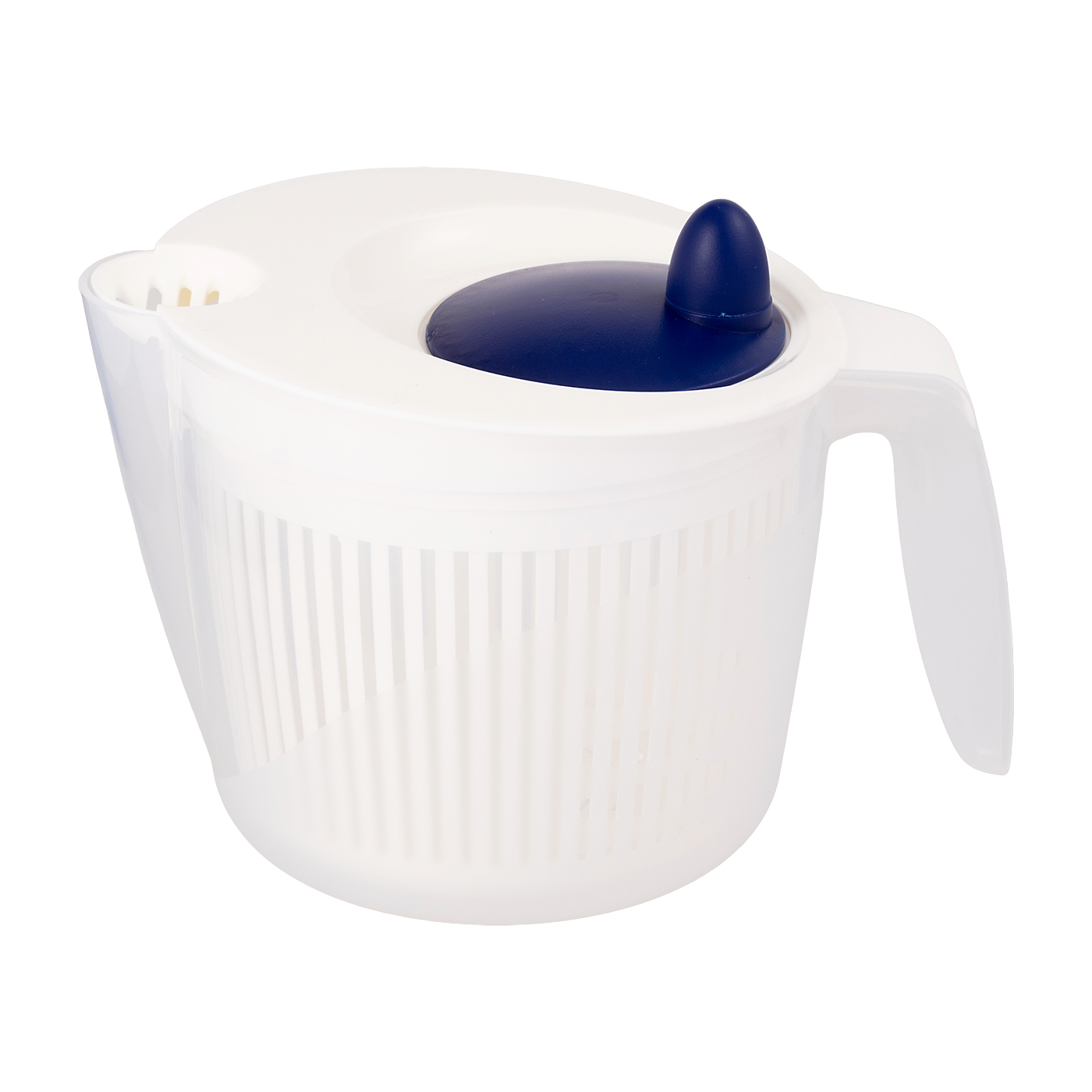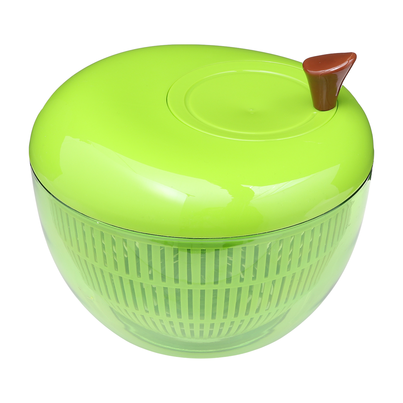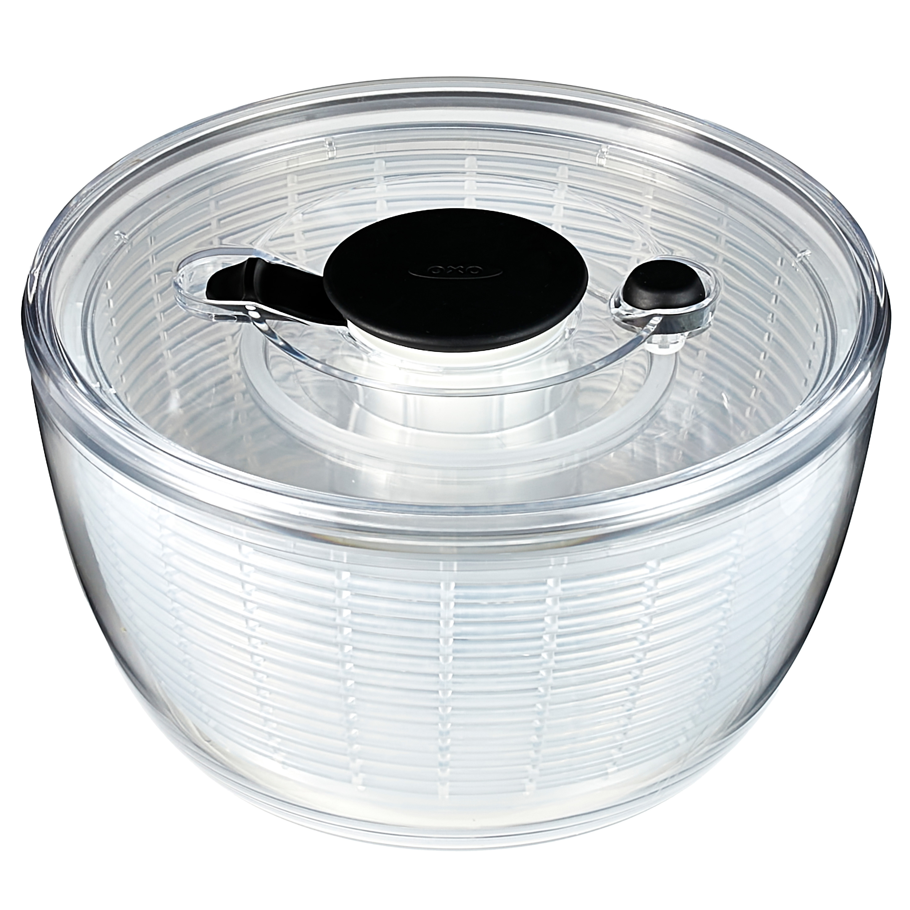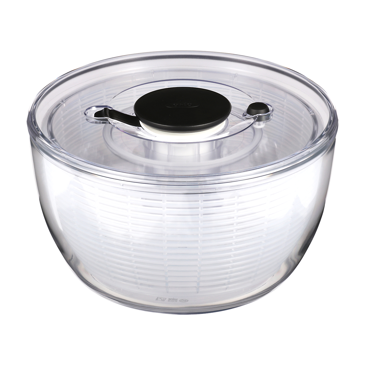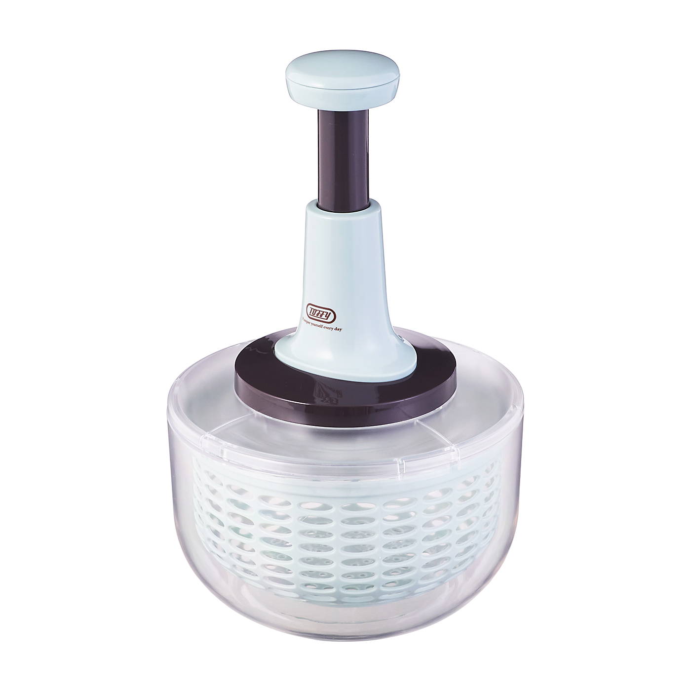 Helen of Troy L.P.の「OXO クリアサラダスピナー(小)」は、手間をかけずにおいしい野菜を食べたい1〜2人暮らしの人におすすめ。コンパクトサイズながら、5回回すだけでしっかり水切りできるのが魅力。レタスを水洗いして水が切れた割合を測ったところ、水が切れた割合は平均79%とトップクラスの水切れのよさを記録。さらに、ストップボタンがあるため回転が止まるのを待つ必要がなく、スピーディに水切りを行えます。プッシュ式のため、片手で簡単に回せる点も魅力。取っ手が大きく持ちやすいので、濡れた手でも滑らず使いやすいといえます。取っ手をフタの中に押し込めるため本体の上に物が置けて収納しやすい点もメリットでしょう。また、内フタを分解できるため隅々まで洗えて清潔に保ちやすいといえます。フタ裏の形状がフラットなので、みじん切りした野菜や水が入り込みづらい点も好印象です。本体の高さが15cm以下のため、200L程度の小さな冷蔵庫でそのまま保存できる本商品。手軽においしい野菜を食べたい1~2人暮らしの人は迷わず買うべきベストバイといえます。