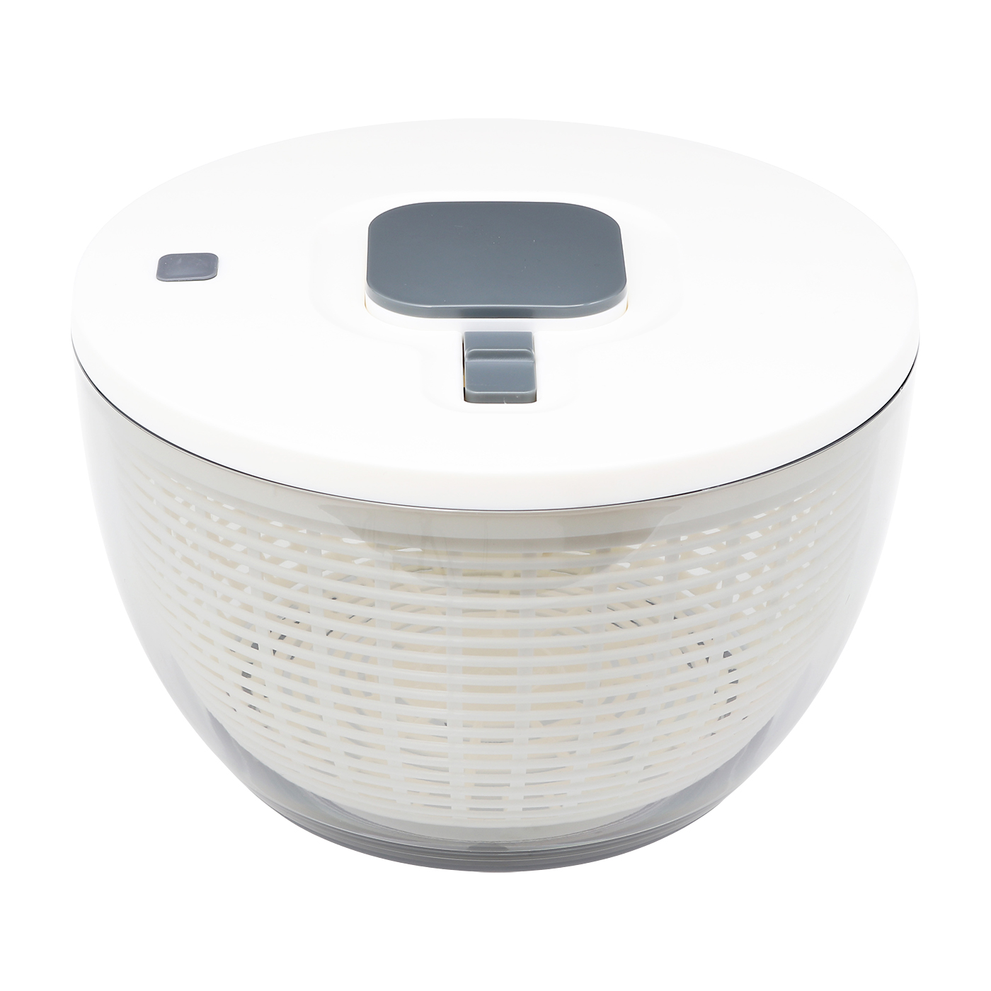 Helen of Troy L.P.の「OXO クリアサラダスピナー(大)」は、毎日生野菜を食べる3~4人家族におすすめの商品。大容量ながらも、70%以上の水が切れました。レタスの水が切れた割合を測ったところ、平均73%を記録し水切れのよさで高評価を獲得。ドレッシングがうすまらず、おいしいサラダを作れるといえます。プッシュ式のため、取っ手を押すだけで簡単に水切りできる点も魅力。底に滑り止めがついているので、片手でプッシュしても滑る心配が少ないといえます。ストップボタンがついており、回転を待つ必要がないのも好印象です。また、本体が大きいものの、フタが軽いうえに取っ手が大きいため持ちやすく、水を捨てるのも簡単。さらに取っ手を本体に押し込んで収納できるため、冷蔵庫や棚にしまう際もかさばりません。3〜4人家族向けの冷蔵庫にそのまま保存ができるサイズなので、大量の野菜を一度に水切りしたい人はぜひ購入を検討してくださいね。