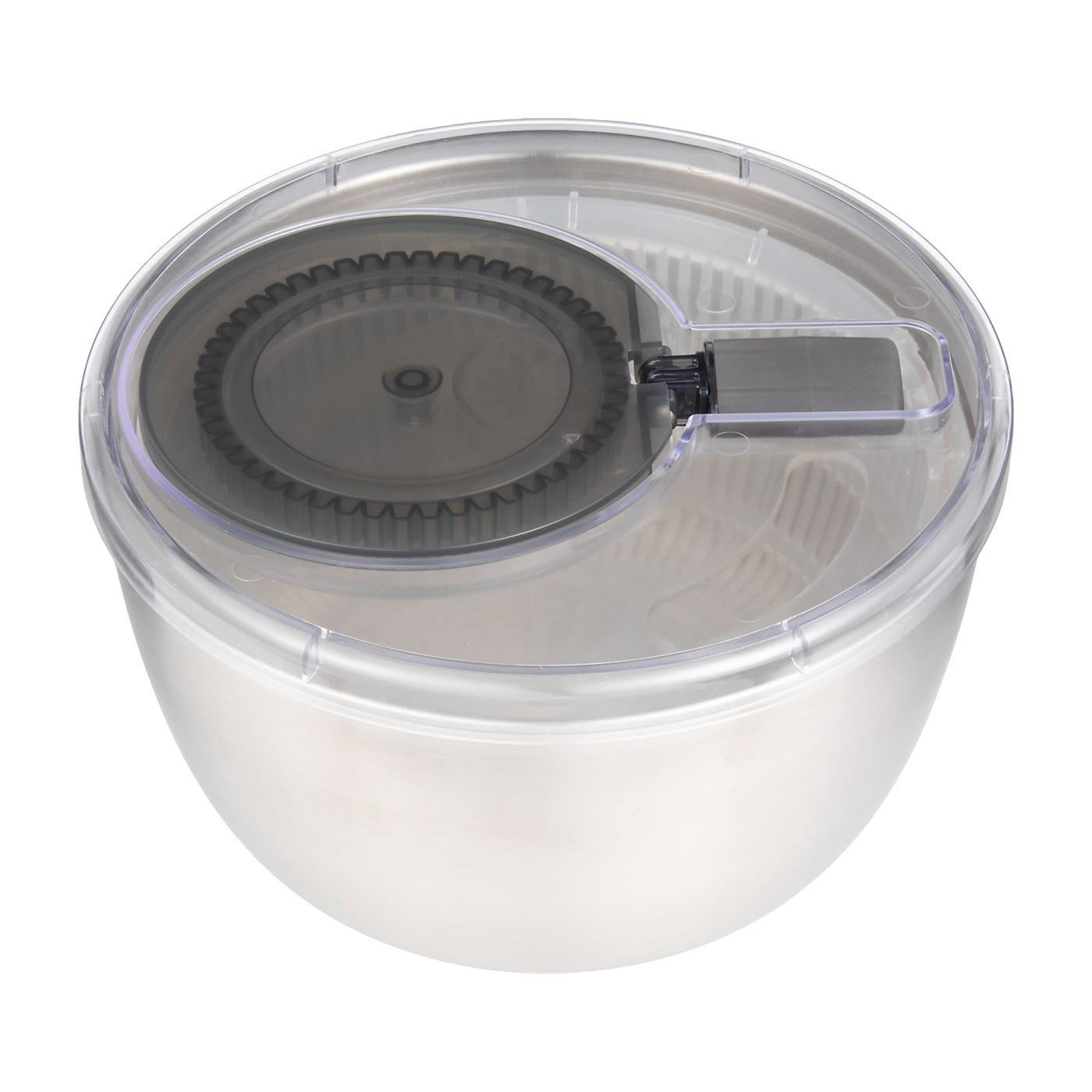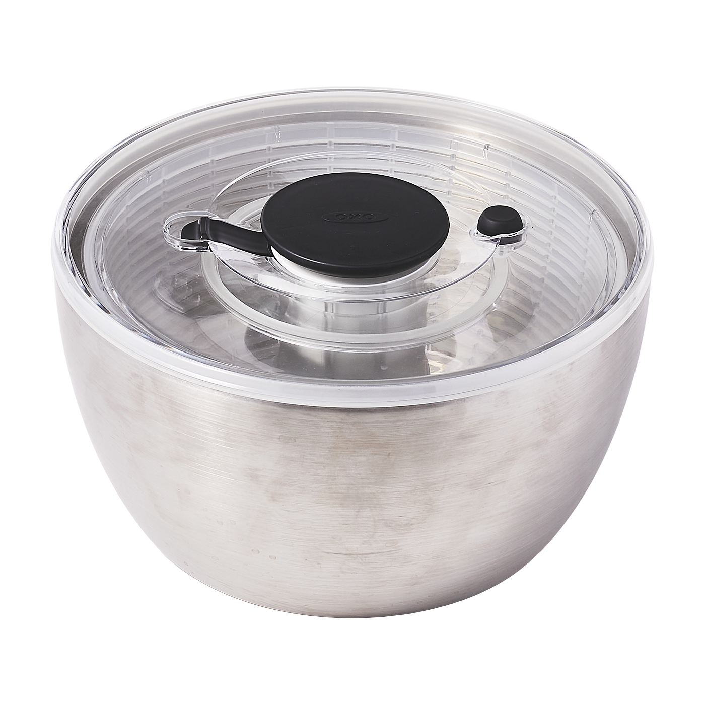 Helen of Troy L.P.の「OXO ステンレスサラダスピナー」は、サラダボウルとしても使いたい人にぴったりな商品。 本体の素材がステンレスで、水を切った野菜をお皿に移し替える手間なく食卓に並べられるため、調理時間の短縮にもつながります。平均73%の水が切れたため、ドレッシングがうすまらずおいしいサラダを作れるでしょう。ストップボタンがついており、好きなタイミングで回転を止められるので、待ち時間なく水切りできるのもうれしいポイント。プッシュ式のため両手で本体を押さえる必要がなく、軽い力で水を切れました。 取っ手を押し込めるため、本体の上に物を重ねられて収納しやすいのもメリット。本体の高さが15cm未満のため、200L以上の冷蔵庫ならそのまま保存できるでしょう。しかし、パーツ数が5個とやや多く、手入れがしづらいのは気がかり。分解に力はいらないものの、本体の素材が金属のため重量が大きく、扱いには注意が必要です。 6Lの大容量サイズなので、3人前以上の大量の野菜でも一気に水切りできる本商品。サラダボウルとしても使える汎用性の高い商品を求める人は選択肢に入れてもよいでしょう。