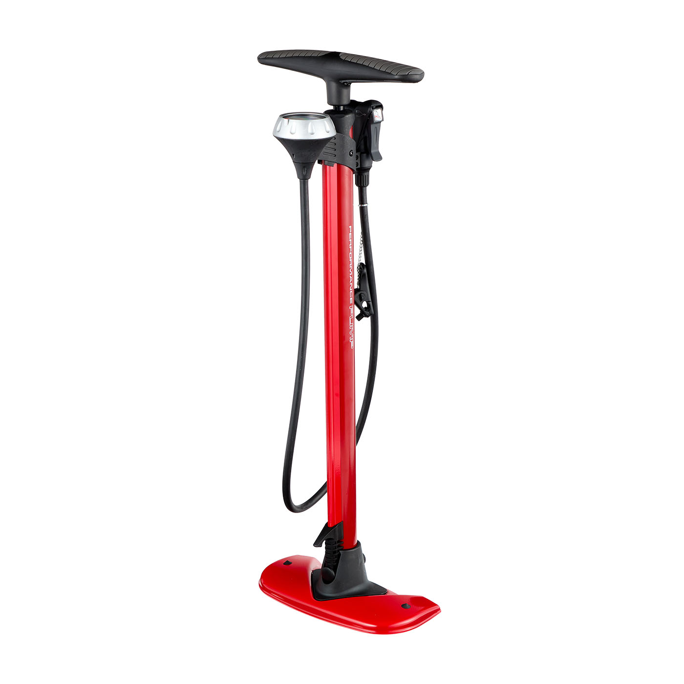 大手自転車販売店を運営するあさひの「CBAパフォーマンスポンプ」。豊富なカラーラインナップが魅力の商品です。1ストロークの空気量は実測で285ccと標準的で、空気を入れる速さは高い評価を得ました。金属製のベースを備えているためポンピング時のたわみは少なく、力が入れやすいといえるでしょう。差し込みタイプの口金で、レバーを操作することでバルブへの着脱が簡単にできます。しかしレバーの操作感は少し固めで、操作にやや力が必要です。空気圧ゲージは誤差±0.5%以下と非常に正確な点はうれしいポイント。細かな空気圧管理がしやすいといえるでしょう。一般的なフロアポンプであり持ち運びには適していませんが、電動ポンプのようなうるささはなく、充電する必要もありません。不満な点が少なくバランスの良い商品。販売元のサイクルベースあさひは全国に500店舗以上あるため、急に空気入れが必要になった際に手に入りやすいですよ。