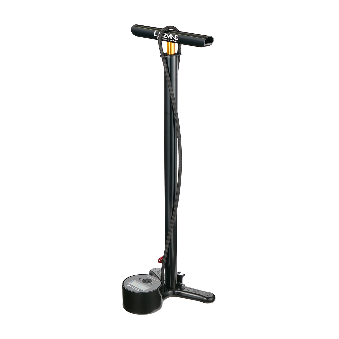 「CNC DIGITAL DRIVE 3.5」はLEZYNEが発売する最上位モデルのフロアポンプ。大きなデジタルゲージが特徴の商品です。1ストロークの空気量は実測で315ccと多く、空気を入れる速さは申し分ない結果でした。金属製のベースを備えており、ポンピング時のたわみが少なく力が入れやすい点もうれしいポイント。口金はねじ込み式で、着脱が少し面倒な印象。しかし差し込み式と違い着脱に失敗がなく、空気が漏れることなく確実に取り付けられる点は好印象です。空気圧ゲージにデジタルゲージを備えており空気圧が読みやすい一方で、誤差±1.25%と若干正確さに欠ける点はマイナスポイント。精緻な空気圧管理はしにくいといえるでしょう。一般的なフロアポンプであるため持ち運びには適しませんが、電動ポンプのような騒音やバッテリー切れの心配がありません。