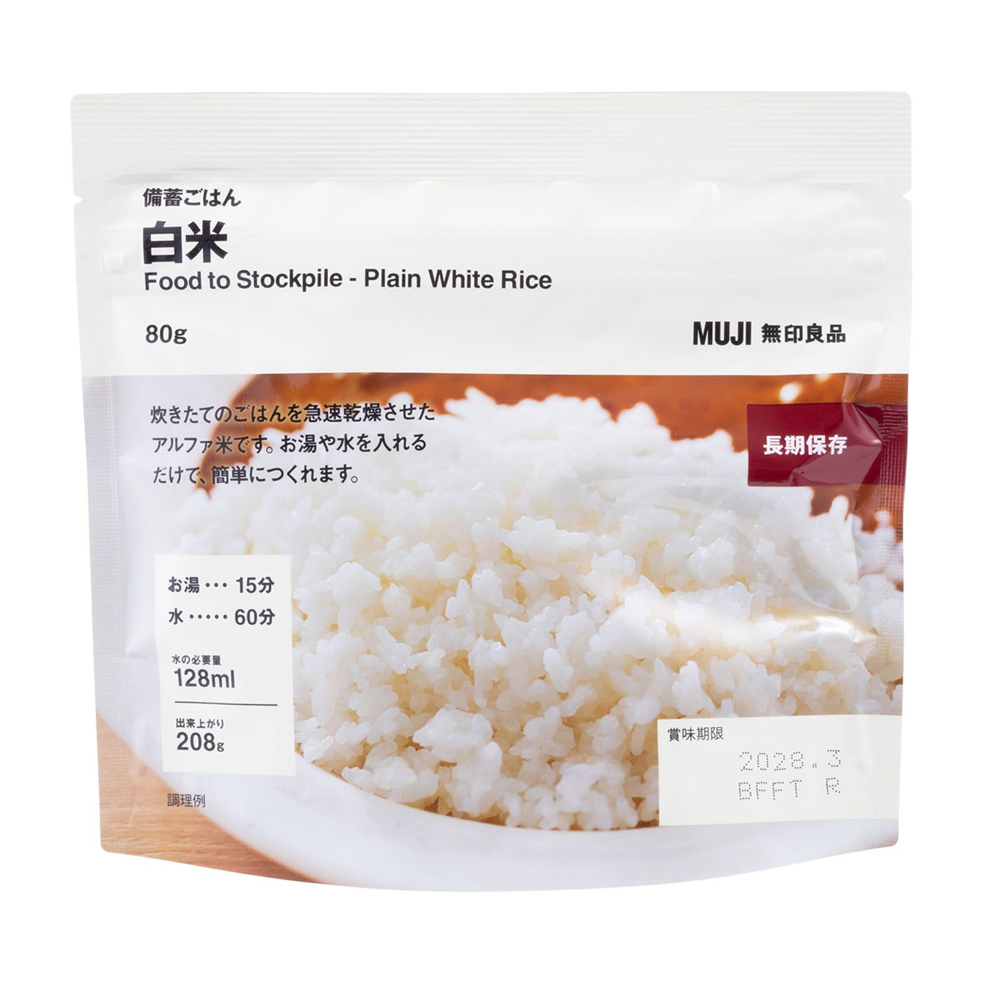 良品計画の「無印良品 備蓄ごはん 白米」は、温めて食べられない非常時でもおいしく食べたい人におすすめです。水で戻して試食すると、噛むほどに甘味を感じ、ふっくらもちもちした食感も楽しめました。モニターからは「炊飯器で炊いたのと変わらない風味で食べやすい」「まろやかな旨味とほんのりとしたお米の甘い香りを感じる」などポジティブな声が多く寄せられています。水またはお湯を注ぐだけの簡単調理で、汁気がなく後片づけも楽ちんです。パウチ入りなので、コンパクトに収納できます。1食で293kcal摂取でき、4年間の長期保存が可能。5〜7年保存できる商品もあったのをふまえると長いわけではありませんが、すぐに買い直す手間はないでしょう。一方、温めたときの食べやすさは低評価に。常温のときに感じたようなお米の甘味や旨味は感じにくく、モニターから「水っぽいだけでお米の旨味を感じられない」「べちゃっとしているのに噛むと芯の硬さが気になる」という意見が挙がりました。とはいえ、手軽なうえ常温だとおいしく食べられたので、お湯がない非常時には重宝するでしょう。