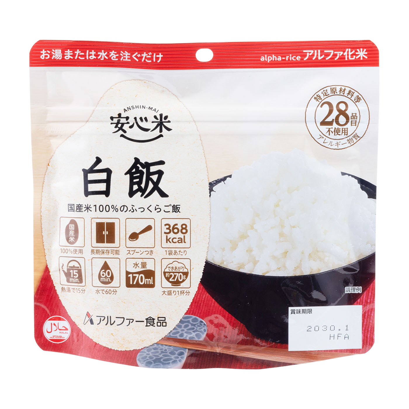 ※ アルファ米は尾西食品株式会社の登録商標です。ただし、より知名度の高い一般的な名称で表現するために、本記事ではアルファ化米のことをすべて「アルファ米」と表記しています。