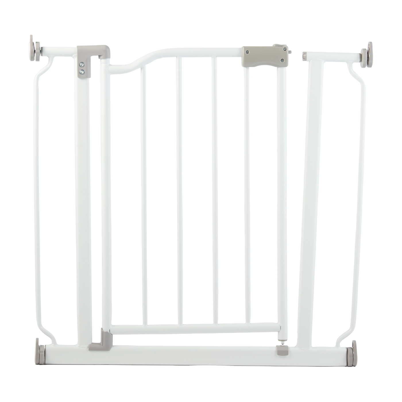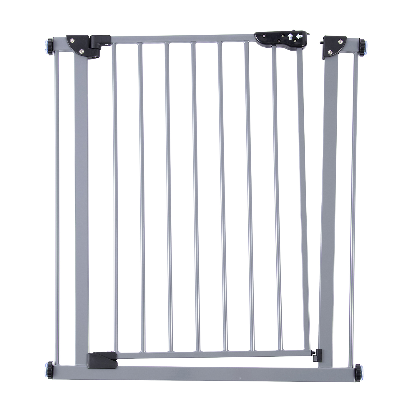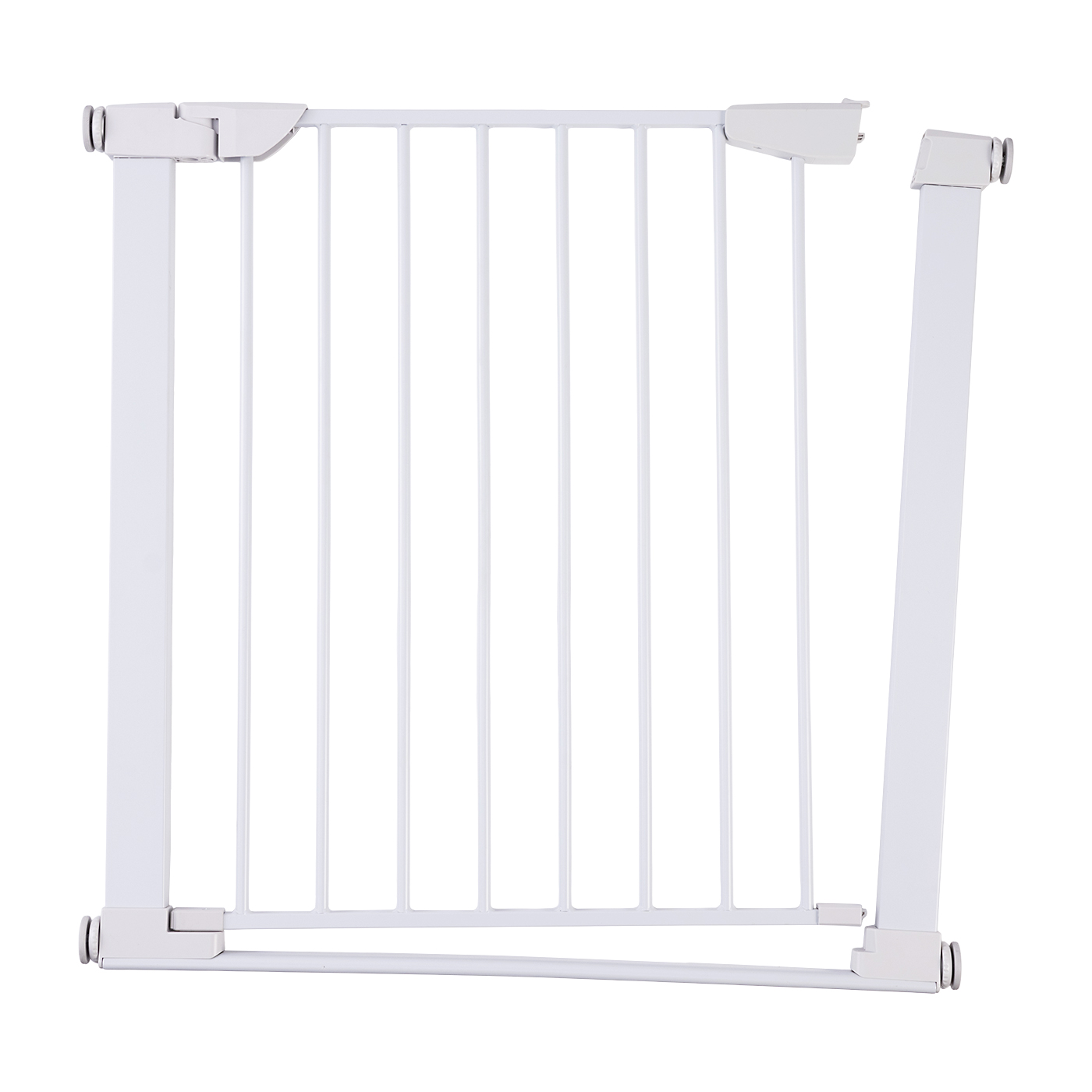 「スチールゲート 拡張フレームつき」は子育て用品や収納グッズも取り扱うシンセーインターナショナルの商品。拡張フレームが1枚付属しており、取りつけ幅の調節が可能な商品です。前後どちらにも扉が開くうえ、ロックの解除を片手で簡単に行えました。荷物を持っているときや、犬を抱っこしているときも楽に出入りできるでしょう。ただし、足もとには約3cmの段差があり、通る際には気をつける必要があります。また、組み立てる必要がなく壁に突っ張らせるだけと設置も簡単。付属の専用工具を使うことで突っ張り器具もスムーズに締められました。きつく突っ張れるため小型・中型犬の力では倒れる心配は少ないといえるでしょう。加えて、ダブルロック機能つきでロックを解除される心配は少ないうえ、手を離すと勝手に閉まるオートクローズ機能もついています。しかし一方で、高さは78.0cmとやや低め。トイプードルやテリアのような脚力の高い犬種が飛び越える懸念が残る印象です。使う際はしつけをしたうえで使うようにしましょう。