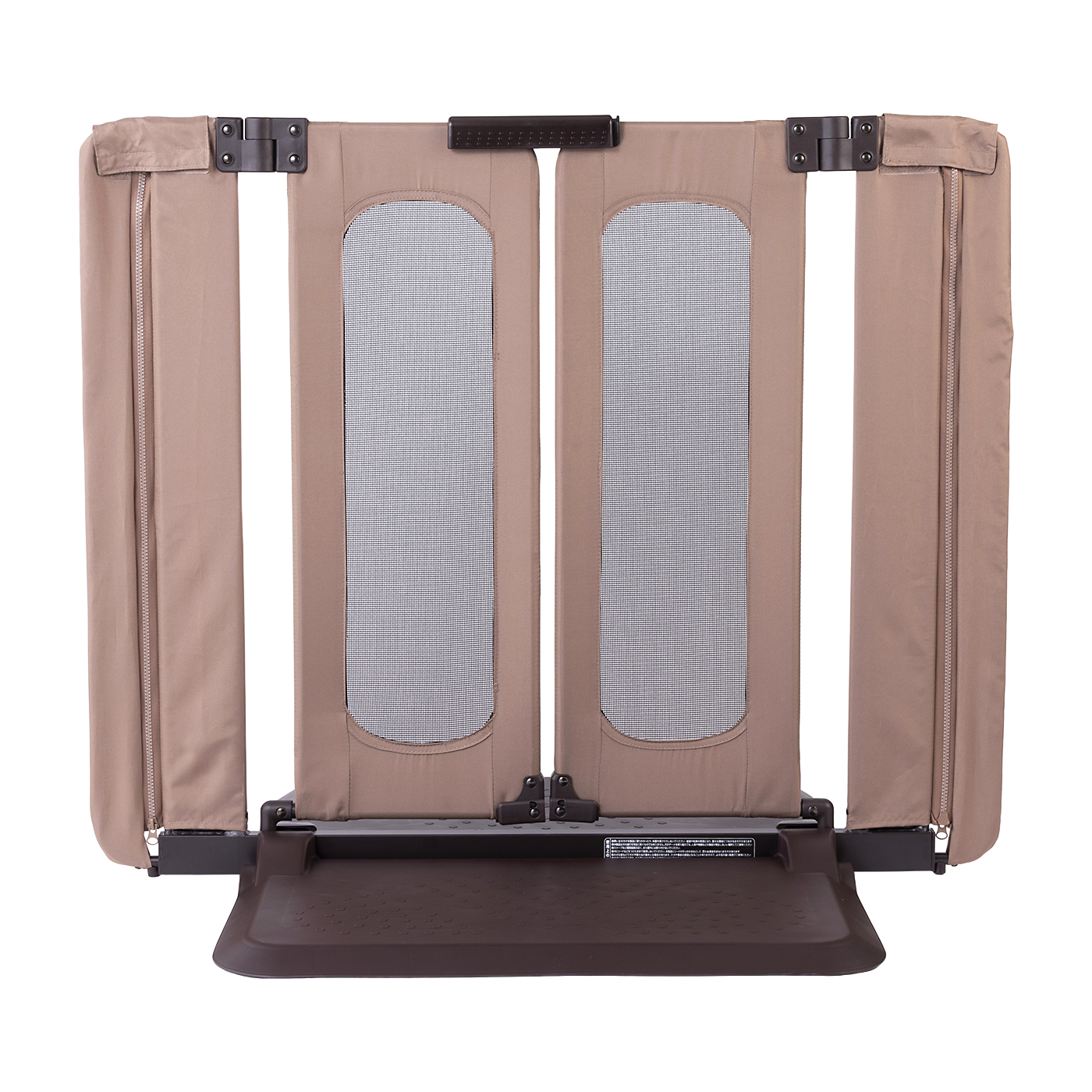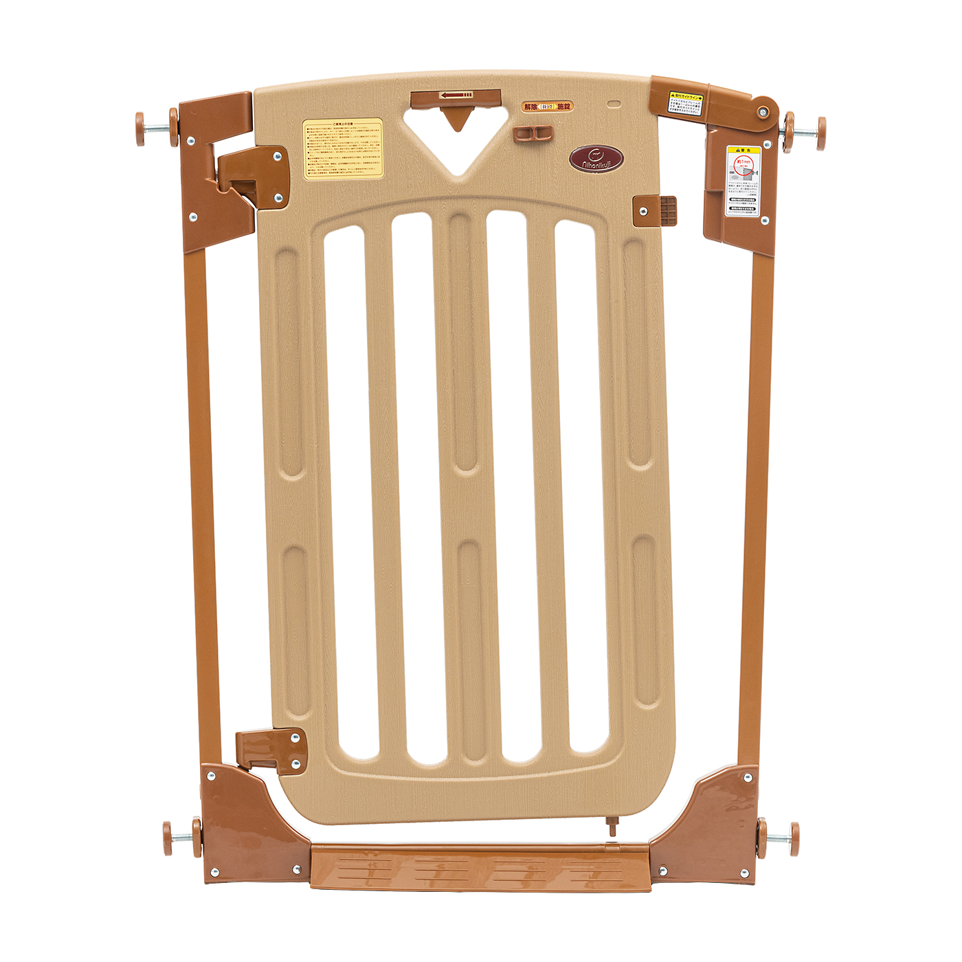 ECサイトを中心に家具やインテリアを販売しているタンスのゲンの「ベビーゲート」。丸角デザインで安全性に優れていると謳っている商品です。足もとの段差は1.5cmと低いうえ、丸みを帯びた形状なので足を引っ掛けにくいのが特徴。さらに、前後どちらにも扉が開くうえ、開閉動作が片手で簡単にできたため、手間をかけることなく通れました。片手に犬を抱っこしていてもスムーズに出入りできるでしょう。また、通ったあとに扉から手を離すと、自動的に閉まるオートクローズ機能つきなので、閉め忘れも予防できるのはうれしいポイントです。さらに、組み立てが要らず壁や柱に突っ張らせることで簡単に設置可能です。突っ張り器具を締める専用工具もついており、容易にしっかりと締められました。小型・中型犬の力では倒れる心配は少ないといえます。しかし高さは75.0cmとやや低め。脚力のあるトイプードルのような小型犬が飛び越える心配があるので、しつけをしたうえで使う必要があるでしょう。
