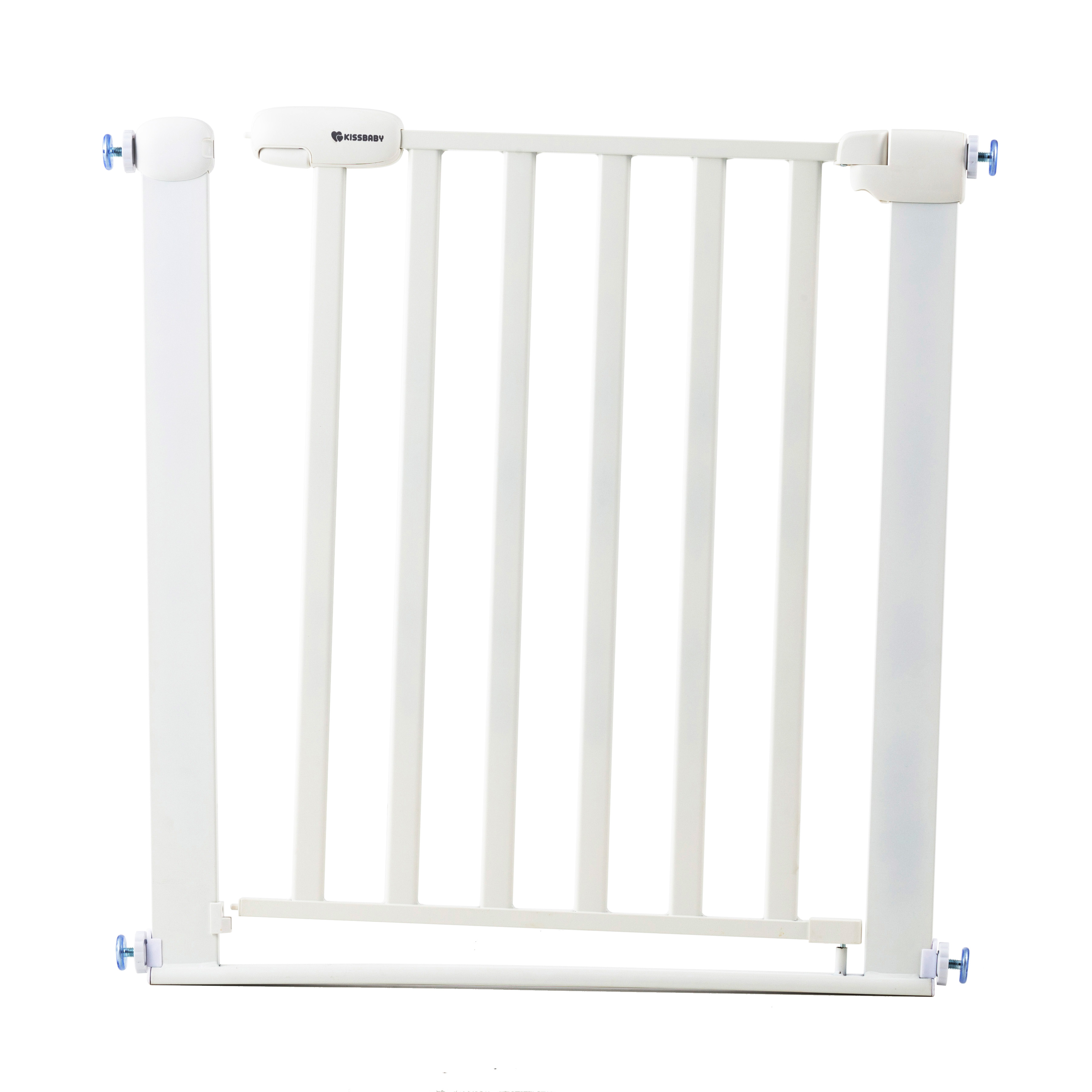 シンセーインターナショナルの「KISS BABY セーフティゲート スムーズ」は、階段や廊下など出入りが多い場所に設置したい人におすすめです。段差はわずか1.5cm。開放機能も備えているため、ストレスなくスムーズに出入りできます。段差が低いため人も引っかかりづらく、転倒しにくいでしょう。手を離すと扉が自動で閉まるオートクローズ機能と、上下に設置されたダブルロック機能を搭載しており、扉の閉め忘れにも対応しています。ただし壁に固定する際のすべり止めがなく、接地面積も39.25㎠と小さいので、安定感は抜群とはいいがたい印象でした。やんちゃな子を飼っている場合には、ゲートがずれてしまう可能性も考えられ、やや懸念が残りました。組み立ては必要ですが、ネジを4点つけるだけで設置は簡単。専用工具も不要で、設置方法に悩むことはないでしょう。犬がすり抜ける可能性もありますが、ある程度の高さはあるためおとなしい小型犬なら飛び越えの心配はないといえます。基本的なロック機能も備わっており、バランスはよい商品です。