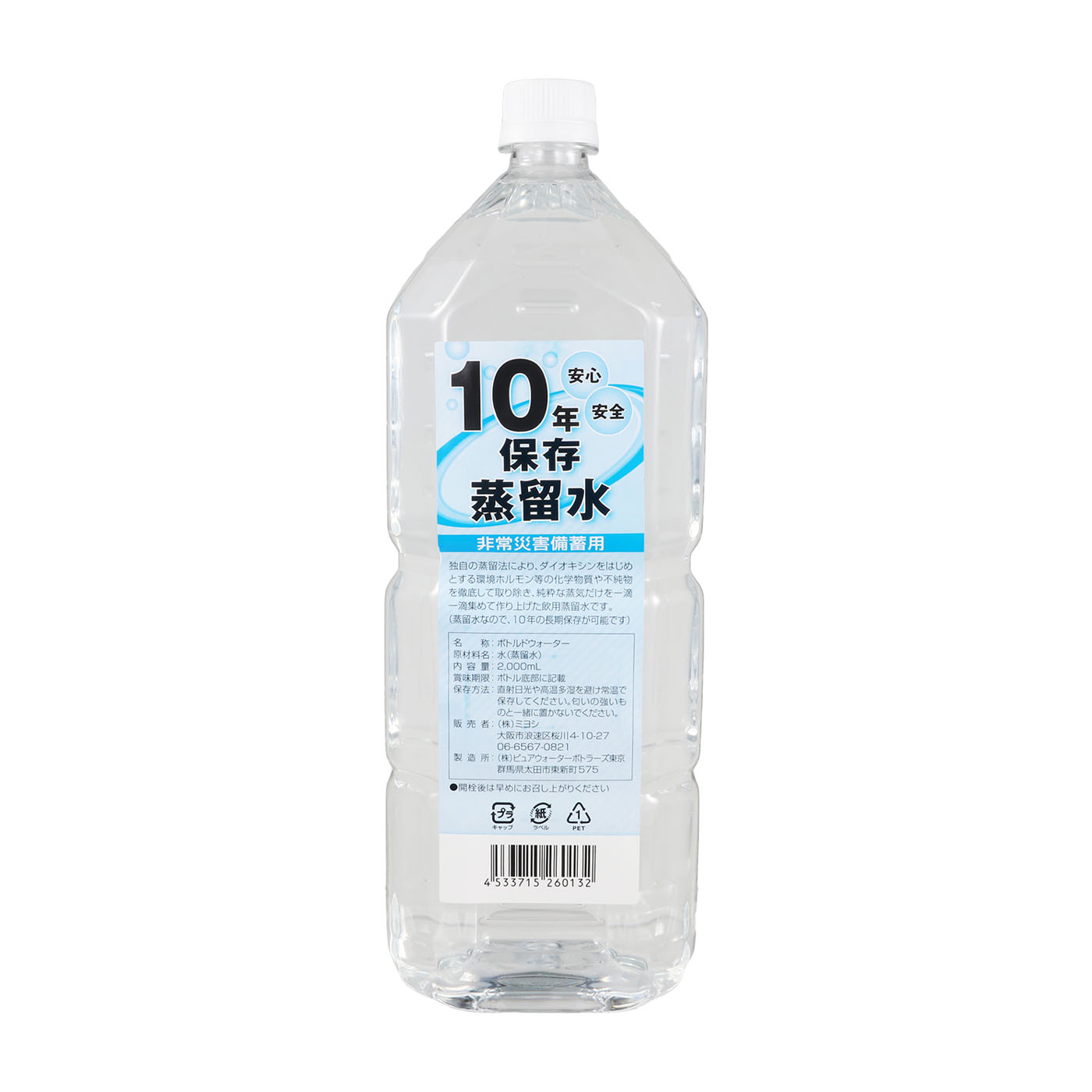 10年の長期保存が可能。カルシウムも含まない純水