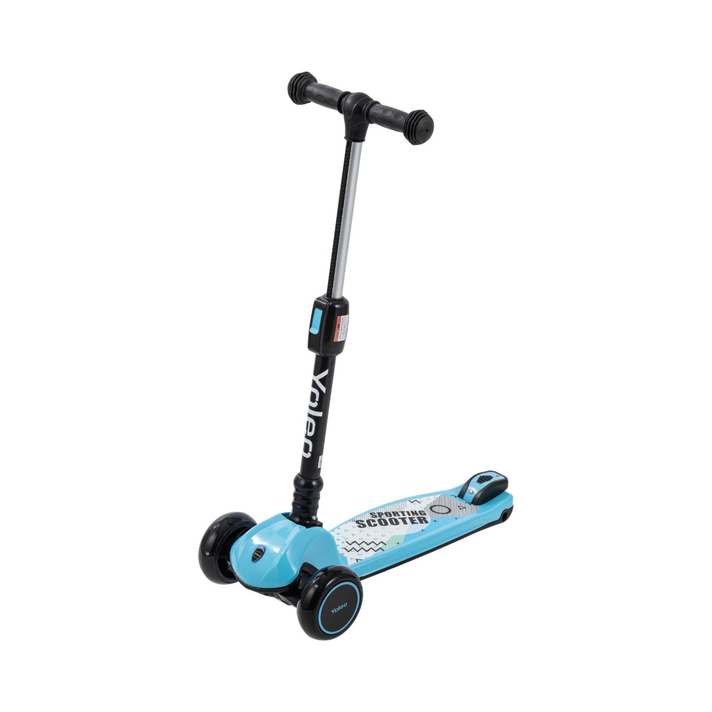 YOLEOの「キックスクーター」は、キラキラ光るタイヤと、細かく高さを変えられるハンドルが特徴の子ども用キックボードです。タイヤには丈夫で弾力のある素材が使われており、耐荷重にも優れています。使い勝手の面で特に便利なのが、3輪構造なのでそのまま自立する点です。スタンドを操作する手間がなく、どこでもポンと置いておけるので、玄関先での保管やちょっとした停車時にもストレスを感じません。折りたたみや組み立ても、レバーを操作するだけの直感的なつくりになっており、数秒で作業が終わるほど簡単です。レバー自体も指をかけやすい絶妙な長さで、毎日の出し入れや持ち運びが苦にならないでしょう。ハンドルの高さは最大82cmまで、自分の好きな位置でぴったり固定できる無段階調整タイプ。子どもの体格の変化に合わせて細かく設定できるので、成長に合わせてちょうどいい高さで使い続けられます。一方で、走行性能については少し注意が必要です。タイヤの間隔がやや短めで、ハンドルのがたつきも少し気になるため、スピードを出したり段差を越えたりするときに、ふらつきやすさを感じる場合も。ガタガタした道よりは、きれいに舗装された平坦な場所での走行に向いています。兄弟・姉妹で共有したり、限られたスペースにスッキリ保管したい場合にぴったりのモデルです。