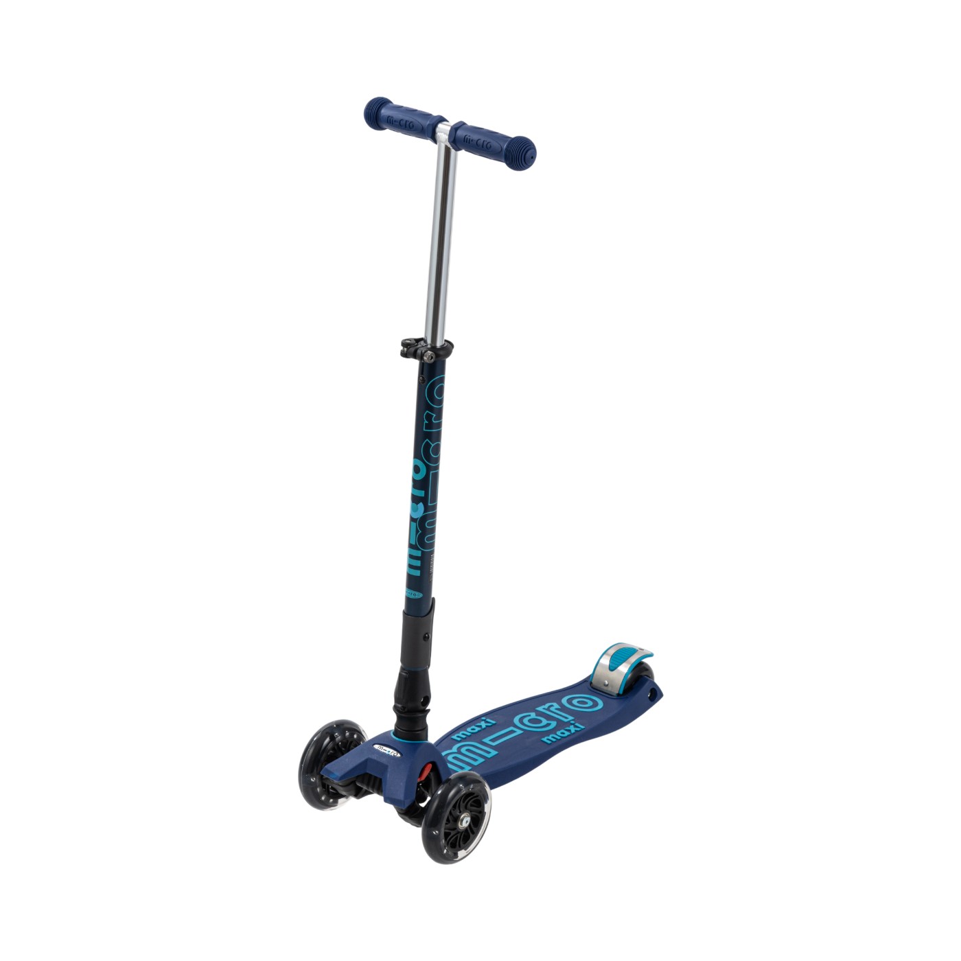 Micro Mobility Systems Ltdの「マキシ マイクロ 折りたたみ デラックス LED」は、前が2輪、後ろが1輪という安定した3輪構成が特徴の子ども用キックボードです。走るとキラキラ光るLEDタイヤを搭載しているので、少し暗い時間帯でも居場所が分かりやすく、子どもも楽しく走れる工夫がされています。特に優れているのが、折りたたみの手軽さと保管のしやすさです。折りたたむ箇所が最小限のシンプルな構造なので、複雑な操作が苦手な人でも迷わずスムーズに扱えます。また、3輪でそのまま自立するため、壁がない場所でもサッと駐輪できます。玄関先や駐輪場の限られたスペースでも、場所を選ばずスマートに置いておけるのは大きなメリットといえるでしょう。走りの面では、デッキが低く作られているため、足を乗せやすく地面を蹴る動作もスムーズです。ただ、後ろのタイヤが小さめの設計ということもあり、スピードが出てくると路面のガタつきを拾いやすく、ハンドル操作に不安定さを感じる場面があるかもしれません。本格的な走行を楽しむというよりは、まずは安定した3輪でキックボードに親しみたいという時期に適しています。ハンドルの高さは最大91cm超え(実測値)まで伸ばせるため、背が伸びても窮屈にならずに使い続けられます。難しい操作を避けたい人や、省スペースでの保管を重視する人に向いている一台です。
