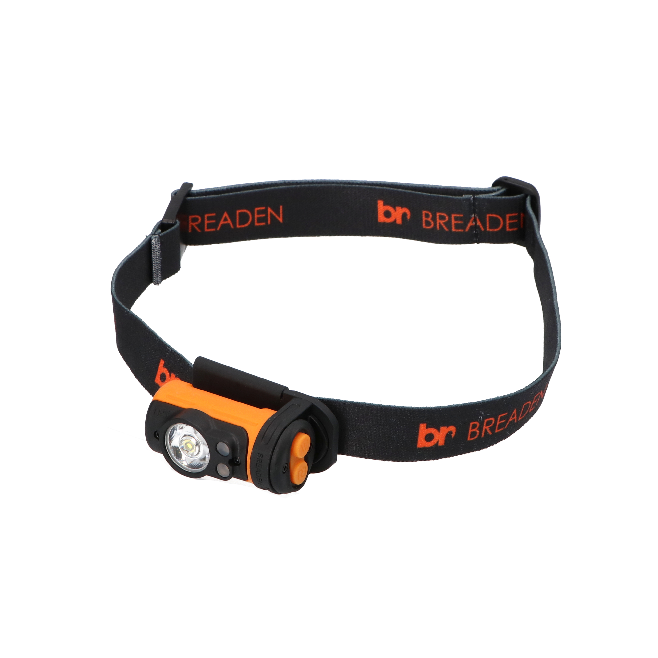 ロッドやルアーを販売する兵庫県のメーカー、ブリーデンの「ノットオンリーネックライト BNL-02」。ネックライトとヘッドライト両方の使い方ができ、手を触れずに点灯できるセンサー機能を搭載しています。明るさはスポットモードは14m先の壁を確認できる明るさでしたが、ワイドモードは光が散ってしまうため、それほど明るく照らせませんでした。1つの白色LEDに対してライト前面のパネルをスライドさせて、モードを使い分けます。光量は3段階から調節する段階式です。赤色LEDを搭載しており、魚を驚かせずに手元の作業が行えるでしょう。防水機能はIPX6で、強い水流を受けても問題ないと謳います。スイッチを1回押すだけで素早く消灯できる仕様で、センサーモードを使えばスイッチを押さずに消灯できます。しかしメモリー機能がついておらず、モード選択のスタートが最大光量からのため、弱い光量にしたいときはわずらわしさを感じました。電池は充電池が内蔵されており、Micro USB Type-Bで充電可能です。着け心地については、後頭部の大きい電池部に対しベルトが2本のためホールド性が低く、頭を振ると揺れ動いてしまいました。ベルトの質感は柔らかく締め付け感は少ないものの、滑り止めなどはついておらず、ずれやすい印象です。電池のもちは最大光量モード検証し、約10時間で消灯してしまいました。充電池式のため電池のもちはあまり期待できず、釣行後は忘れずに充電することをおすすめします。