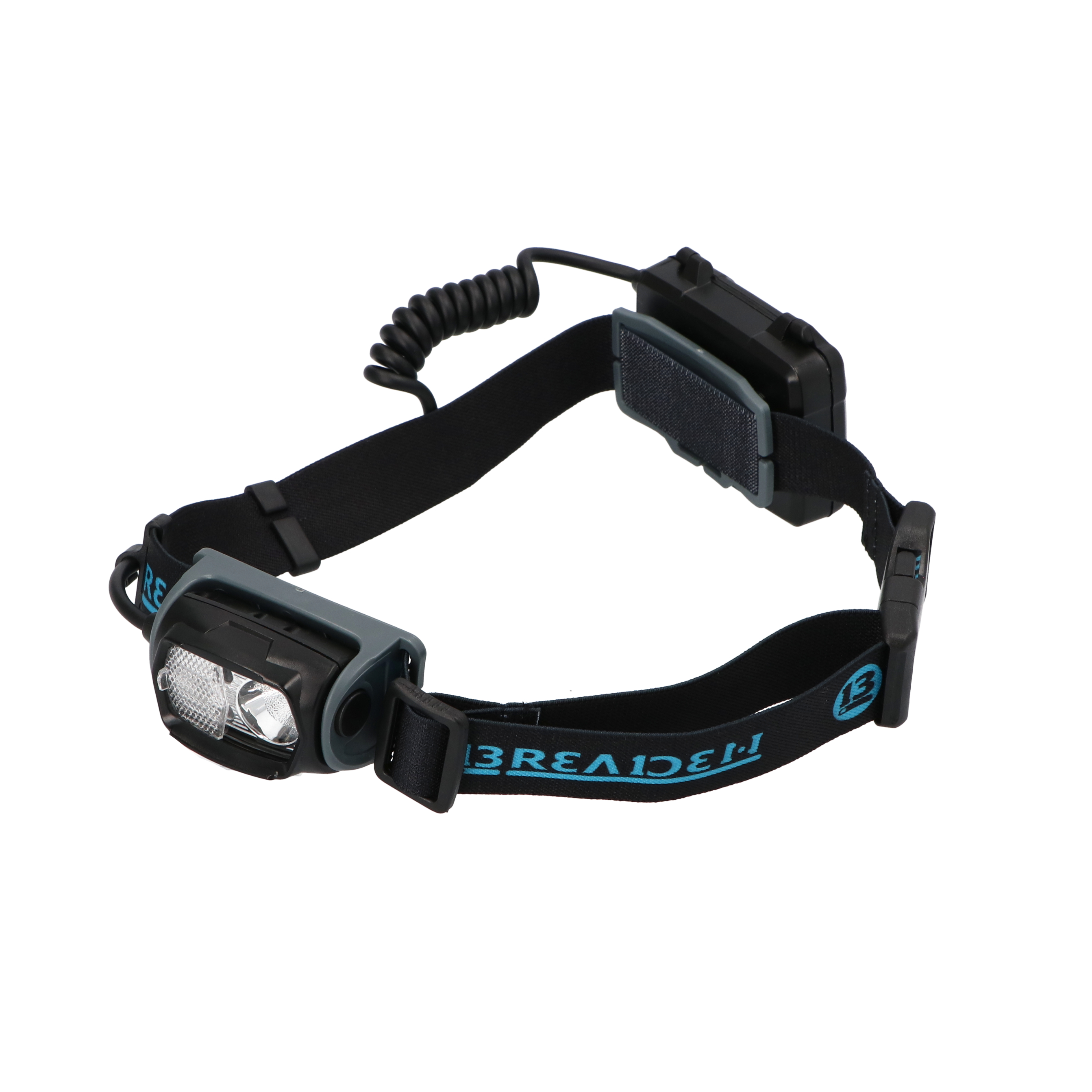 世界70か国でライトを販売するドイツのメーカー、Ledlenserの「MH4」。釣り・アウトドア用に設計されたモデルで、ライト部はマウントから取り外し可能。リュックなどにクリップでつけて使えます。非常に明るい白色LEDを搭載しており、とくにスポットモードの明るさの検証では、今回テストした商品のなかで最も高い評価を獲得しました。ワイドモードも良好な明るさです。モードの切り替えはフォーカスで行うタイプで、電球前面のつまみを動かして調節します。光量の調節は段階式で、強弱の2つのみと少ない設計。長押しで赤色LEDに切り替えられ、魚にプレッシャーをあまり与えずに手元の作業を行えるでしょう。ロック機能やブースト機能はついていません。約5秒間の点灯後なら、1回押すだけで消灯可能。釣り場に着いたらすぐにライトを消して釣りを開始できるでしょう。しかし、明るさを記憶するメモリー機能はついていないので、明るさを設定しなおす必要があります。電池は単3形電池と専用充電池に対応したハイブリッドモデル仕様。充電池の場合、マグネット式ケーブルで簡単に接続できますが、乾電池の場合はライト部をベルトから取り外すひと手間がかかります。着け心地は、柔らかなベルトが好評でしたが、ライト裏のおでこへの感触は硬い印象です。コンパクトかつ軽量なため、重量感はほとんどありませんでしたが、頭を縦に振るとややずれを感じました。電池のもちは専用充電池で検証し、最大光量モードで約8.5時間と短い結果でした。上位の商品ほどの連続点灯時間はなかったため、実使用では光量を落として使うなど工夫が必要です。スポットモードで、遠くを明るく照らしたい人におすすめのライトです。