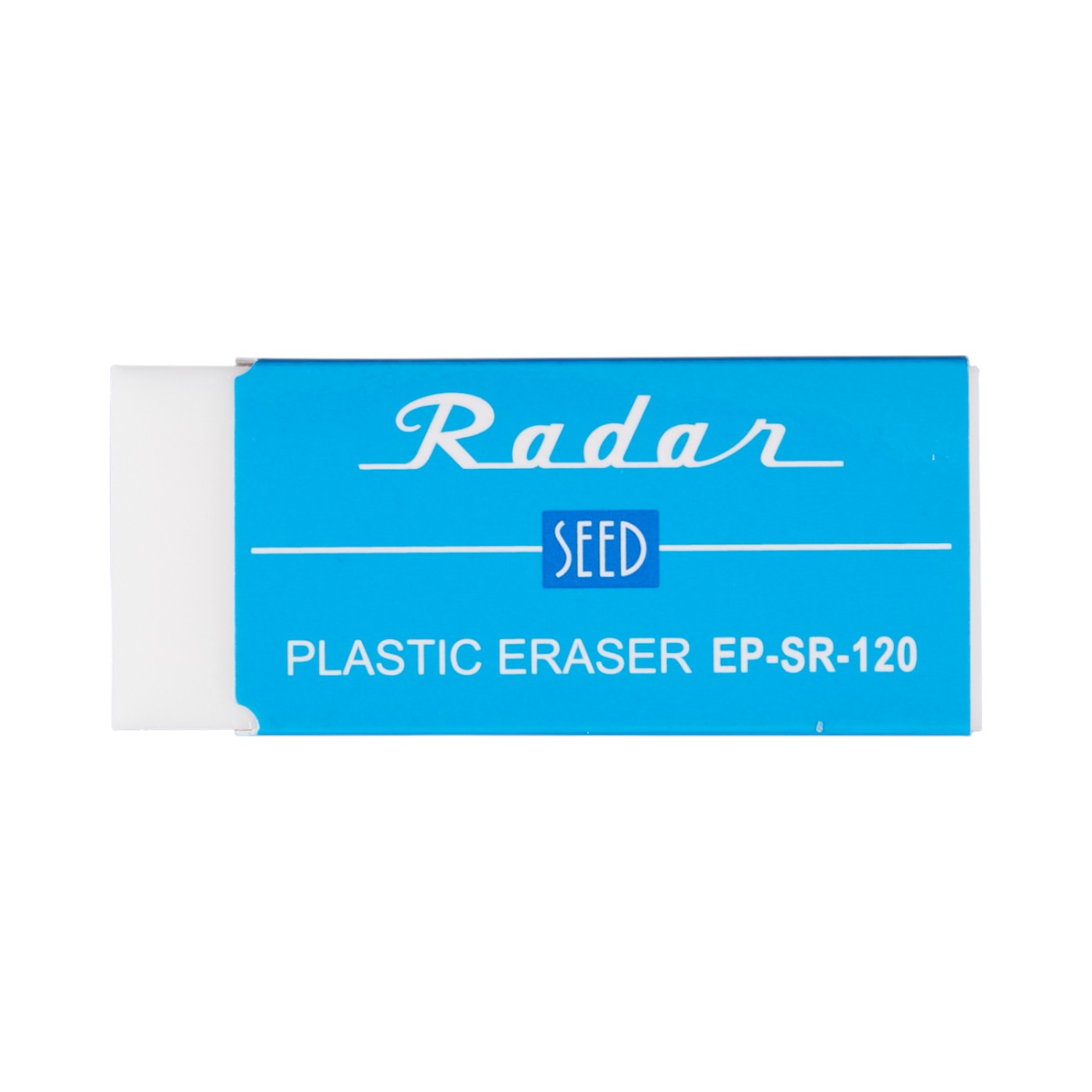 シードの「レーダーSR」は、製図・事務・学童用など、さまざまな用途で使えるロングセラーの消しゴムです。消しカスが散らばりにくく、後片付けがしやすいと謳っています。青いスリーブは角を切り落としており、消しゴムが折れないよう配慮したつくりです。