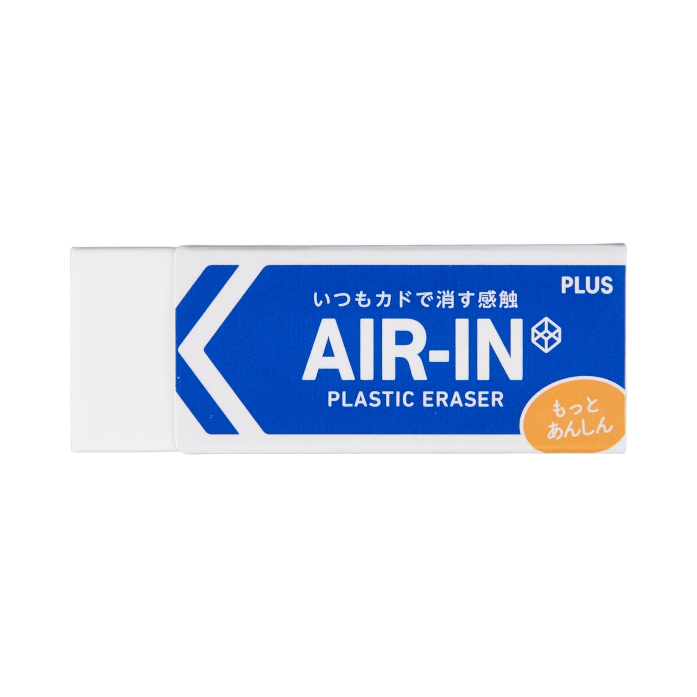 プラスの「エアイン プラスチック消しゴム」は、いつも角で消す感触にこだわった消しゴムです。スリーブは側面の上部を丸くカットし、消しゴムが折れにくいように配慮。2サイズあるので、使用頻度に合わせて選べます。