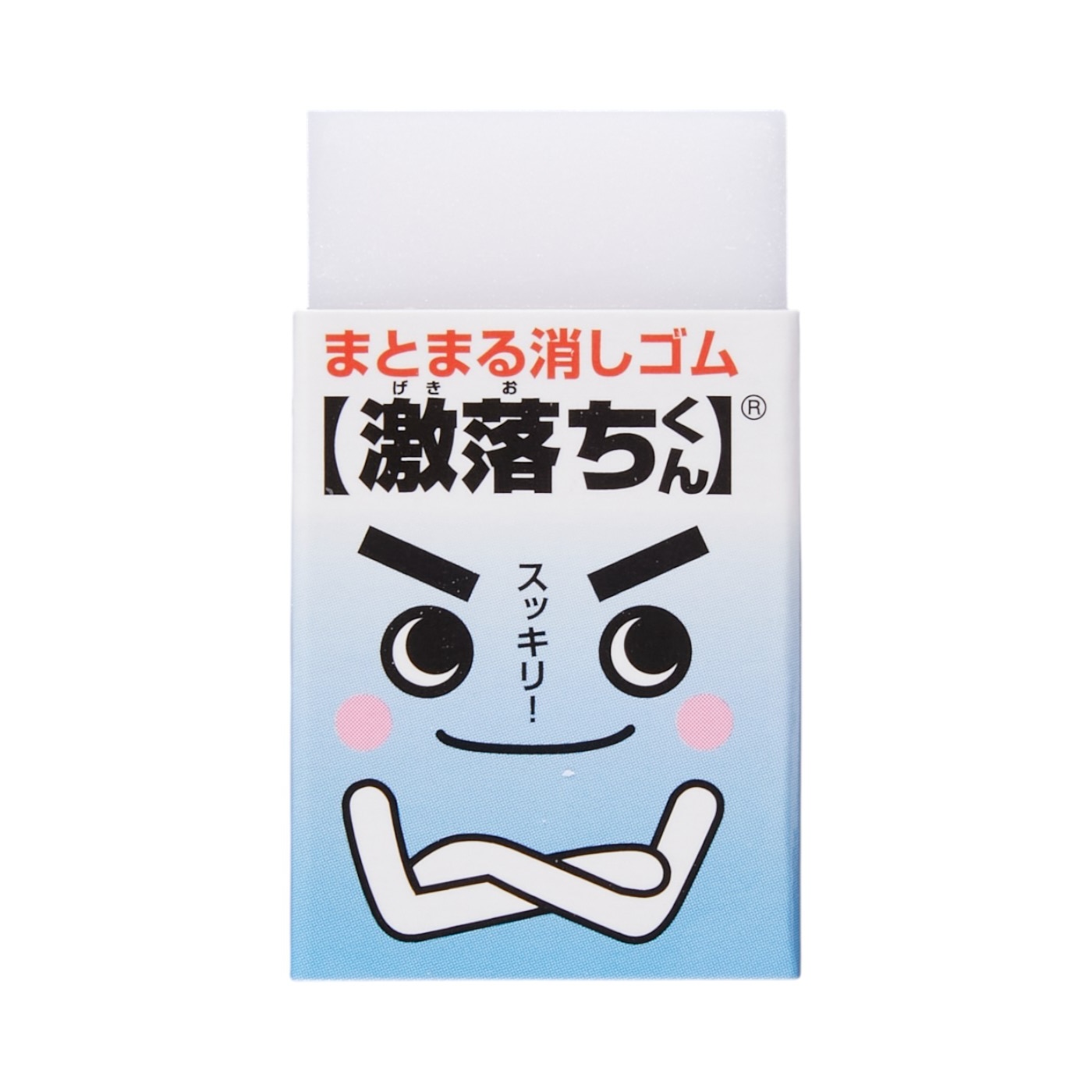 大創産業の「ダイソー 激落ちくん まとまる消しゴム」は、家庭用品メーカーのレックがダイソーで販売している商品です。「消しカスすっきり!」と消しカスのまとまりやすさを売りにしています。形状はスタンダードなブロック型で、広い面にも対応しやすいのが特徴です。