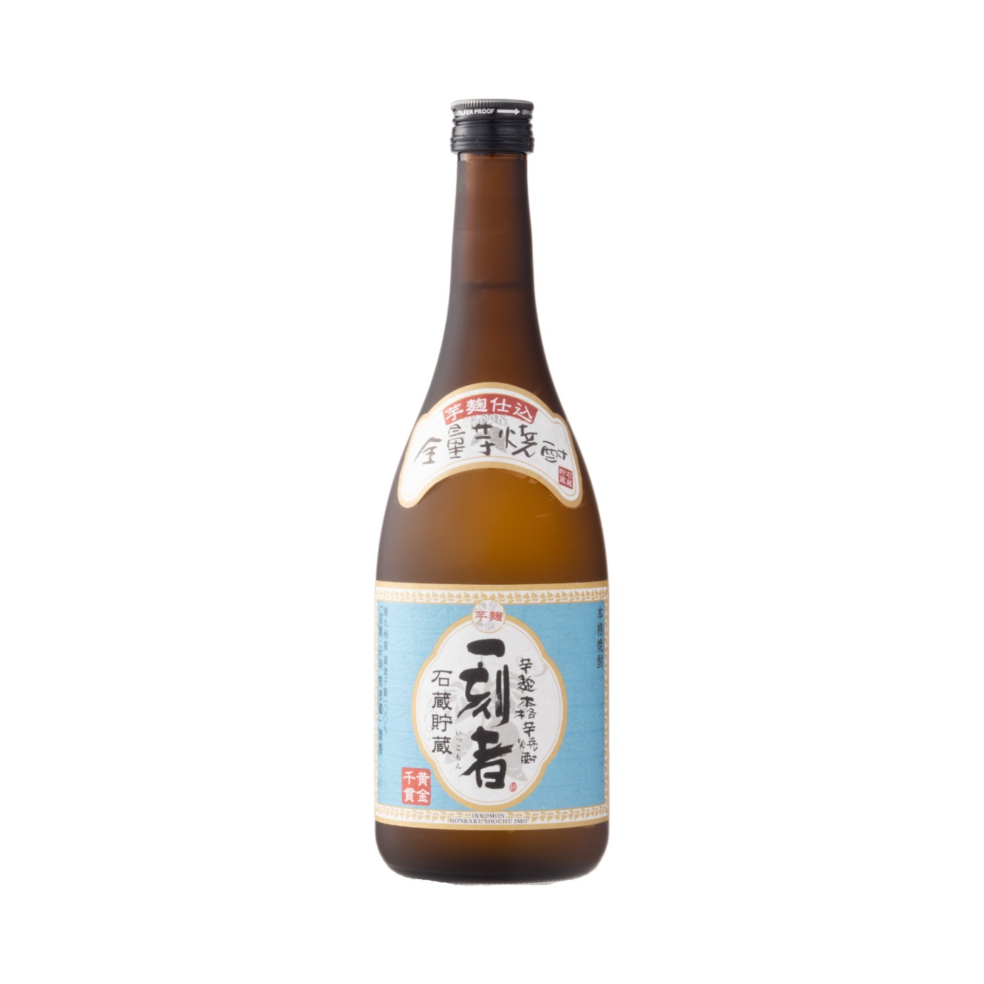 宝酒造の「全量芋焼酎 一刻者(いっこもん)」は、水色と白の落ち着いたラベルが印象的な芋焼酎。原料は全て芋由来のものを使用し、芋本来の風味にこだわった仕上がりです。主に25度の商品が中心ですが、限定品として36度の長期貯蔵原酒も展開されています。おいしさの検証では、芋焼酎らしい風味と甘みのバランスに対して好意的な意見が多く寄せられました。モニターからは「芋の甘さが心地よい」「主張しすぎずバランスが良い」といった声があり、クセの強さを控えめにしながらも、芋の魅力を感じられる味わいでした。香りにはたくあんのような独特さがあり、余韻にはほのかな香ばしさをともないます。飲みやすさの検証でも、一定の評価が得られました。「軽くさらっとしていて雑味がない」「芋の香りが強めだが甘みがあって飲みやすい」というコメントがあり、風味をしっかり味わいたいがクセは抑えたいという人には好まれるでしょう。ボディはやや重ためで、飲みごたえも十分なコクタイプです。芋焼酎らしい香りと味わいを堪能したい人や、飲みごたえのある焼酎を求める人に向いています。濃いめの肉料理や中華、エスニック系の食事とあわせて、お湯割りやロックで楽しむのもおすすめです。