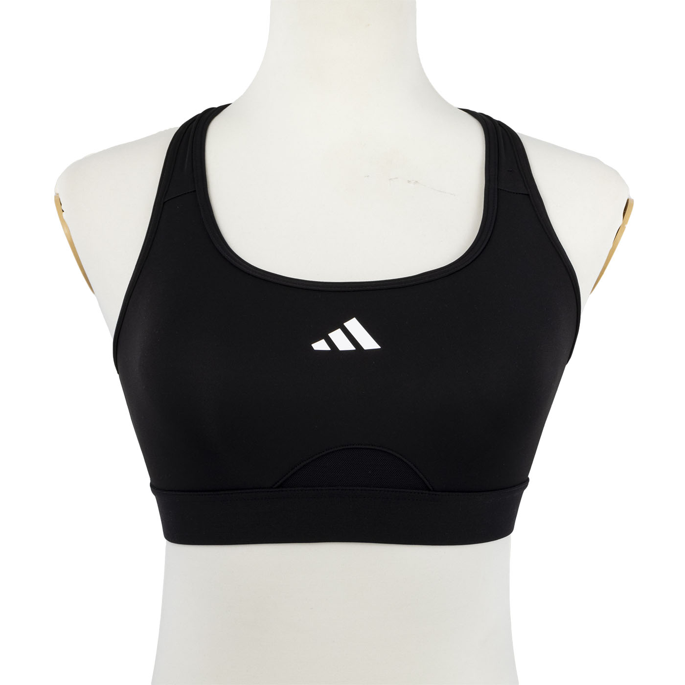 アディダス・ジャパンの「Powerreact トレーニング ミディアムサポートブラ」は、ランニングをする人におすすめです。カラーはホワイト・ブラック・セミピンクスパークの3色から選べます。胸元の開きが狭めかつ肩紐太めで胸をしっかりホールドするつくりで、ランニング時の胸の揺れを軽減できました。実際にランニングをしたモニターからも「胸の揺れが気にならなかった」との声が多数。D・Eカップの胸が大きめの人でも胸をしっかり支えられている安心感を得られますよ。ランニング後もスポーツブラが大きくズレることがありませんでした。洗濯後は6時間でしっかり乾きました。また、30回洗濯を繰り返しても、パッドの端が毛羽立つ程度でほかに劣化はほとんど見られなかったため、へたりにくく長期間使用できることもうれしいポイントです。一方、胸のカバー範囲が広いため、やや暑苦しさを感じる可能性はあるでしょう。また、全体的に伸縮性がないので体の動きを制限されやすいことが難点。着脱の際にも手間取りやすかったため、スムーズに着脱を行いたい人には不向きといえます。伸縮性が少ないためストレッチにはあまり向きませんが、胸をしっかりホールドする安定感は魅力。ランニングのように胸の揺れを感じやすい運動時に向いているスポーツブラがほしいなら、ぜひ手にとってくださいね。