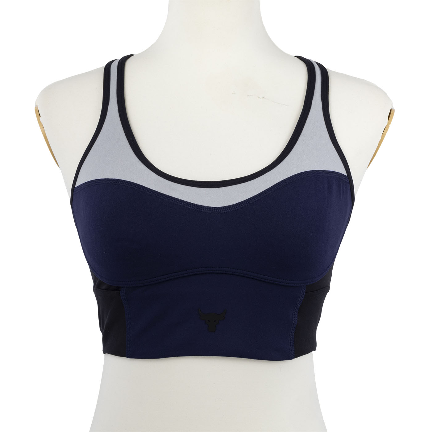 ドームの「アンダーアーマー UAプロジェクトロック インフィニティブラ ミディアムサポート」は、生地にストレッチ性があり、柔らかい生地で包まれるような着心地が魅力。肩紐の食い込みやアンダーゴムの締めつけも気になりにくく、ストレッチなどの動きが緩やかな運動にぴったり。胸元はやや広めではあるものの肩紐が太めで安定感があり、胸の揺れを軽減できました。胸のサイズにかかわらず、しっかりとホールドされている実感を得られますよ。しかし、ゴムが細めなのでストレッチのあとや、走ったあとに中心部分がズレやすいことには注意が必要。大きく動いたあとには、位置の調整が必要になる可能性があるといえます。肩紐が分離しているので着用時に絡まりやすいものの慣れればさほど気にならないでしょう。洗濯を繰り返しても新品同様の状態を保てたものの、胸からみぞおちあたりまで覆う構造なので蒸れを感じやすいことは惜しいところ。なお、洗濯後は8時間で乾きますが、連日使用したい人は数枚もっておくとよいでしょう。激しい動きをしなければ胸のサイズを問わず使いやすく、ストレッチやヨガに向いている商品といえます。