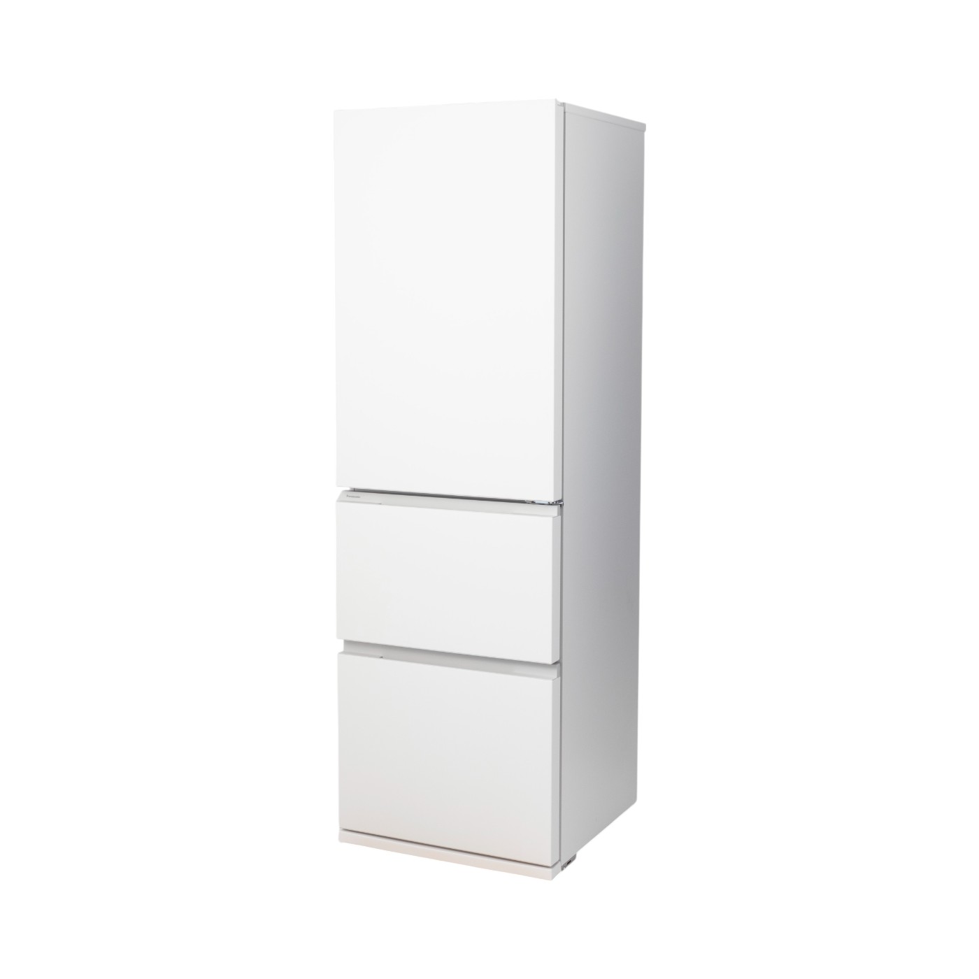 シリーズのなかでも収納力に配慮したモデルとして展開されている、東芝の「VEGETA 冷蔵庫 GR-W36SV」。定格内容積は356Lで、野菜室や冷凍室を含めてバランスのよい構造です。同価格帯の商品のなかでも自炊重視の家庭に向けて展開されています。チルド室は温度が安定しており、肉や魚の鮮度を長く保ちやすい印象でした。冷凍室の庫内も平均温度が低く保たれており、冷凍保存中心のライフスタイルでも安心して使えます。また、東芝独自の「フリードアポケット」で、ドアポケットを底のレバーで簡単に動かせる点も魅力。冷蔵室の収納効率も高めで、二人暮らしには必要十分な容量が確保されていました。一方で、電気代が年間で1万円を超える水準。節電モードで多少押さえることはできそうですが、電気代を安く押さえたいと思う人には少し不向きな印象です。冷蔵室内の照明は天井部のみ。冷蔵室が大きめの商品ゆえに、冷蔵室の下段奥はやや見づらい恐れがあります。冷蔵・冷凍どちらの鮮度保持力も重視したい自炊派の二人暮らしにおすすめの商品。また、収納のバランスが取れた冷蔵庫を探している人なら、候補に入れて損のない一台です。