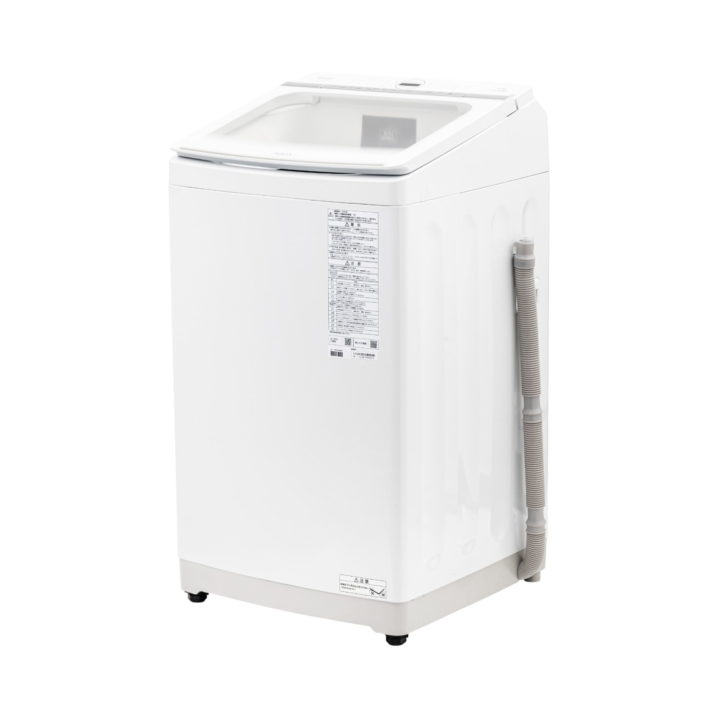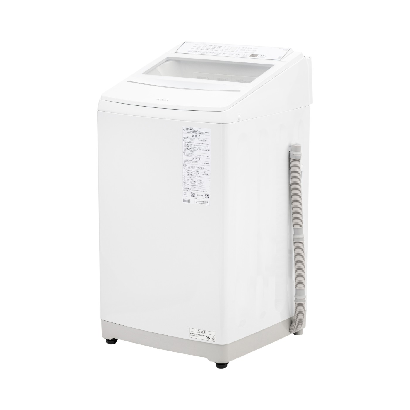 アクアの全自動洗濯機「AQW-V7A」は、洗濯容量7kgの商品。ボディ幅は52.0cmとコンパクト設計が特徴です。ホワイトを基調としたシンプルなデザインで、傷が付きにくいワイドクリアガラストップを採用。さまざまな洗濯コースが選べ、衣類のダメージを抑えるやわらか脱水&衣類ケアコースも特徴の1つです。この洗濯機は、検証で使用したどの汚れに対しても高い洗浄力を持っています。水溶性や不溶性の汚れだけでなく油溶性の汚れもほとんど見えないレベル。特殊汚れにも効果的で、どこに汚れがあったのかわからないほどの結果を示しました。幅広い汚れに対応できる性能が魅力です。糸くずフィルターはプラスチック製で、ティッシュで簡単に糸くずを取り除ける仕様。自動槽洗浄機能と槽乾燥コースも備えており、カビの発生を抑えつつ清潔に保てます。さらに、槽の底のパルセーターに抗菌・防カビ素材が使われているため、衛生面にも配慮されているといえるでしょう。フタを開けたままでもボタンの操作が可能。音の静かさにおいても、実測稼動音が51.97dBと静かで、夜間の使用にも適しています。一方で、自動投入機能がない点は注意が必要でしょう。価格を抑えたい人やまとめ洗いが多い一人暮らしの人におすすめです。