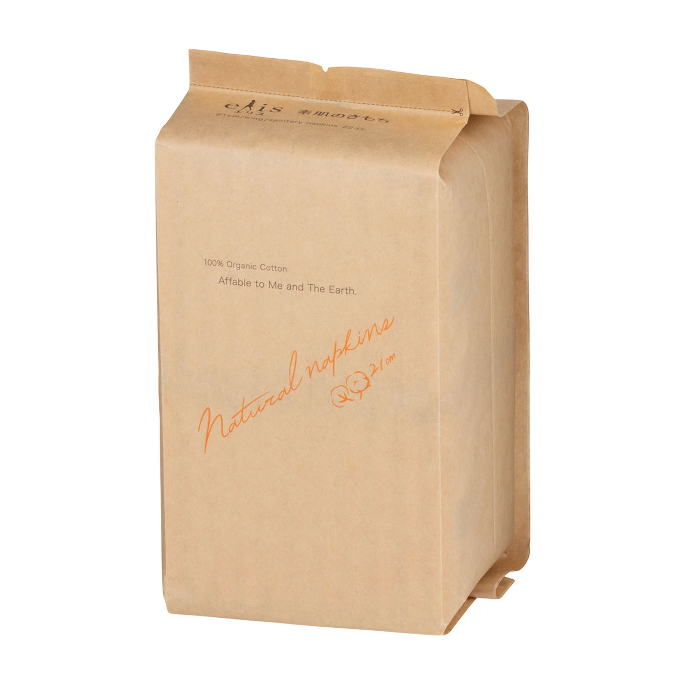 「エリエール」や「エリス」などの家庭紙・生理用品でお馴染みの大王製紙が販売する「素肌の気持ち ナチュラルシリーズ 多い昼~ふつうの日用 羽つき 21cm」は、「わたしと地球にやさしいナプキン」をコンセプトにした商品。シンプルでナチュラルなデザインが特徴です。吸水ポリマーを使用しており、吸水力の高さの検証では平均61.8mL吸水。多い日の経血量はおおよそ20〜30mLなので、経血量が多い日でも漏れの心配が少ないでしょう。吸水ポリマーを使用していますが、表面がコットン素材なのでややベタつきが気になりやすいといえます。程よい厚みがあり肌への密着感が高い一方で、モニターからは「表面が紙のような質感で、ゴワつきが気になる」という意見が挙がりました。粘着テープが13.5cmと長めですがテープ同士の間隔が広めで、日常の動作であればずれにくいものの、活発に動くとずれる可能性があります。経血量が多い日でも快適に過ごしたい人に特におすすめですが、1枚あたりの価格が約23円と高めなので、コストを抑えたい人や、つけ心地にこだわりがある人はほかを検討しましょう。