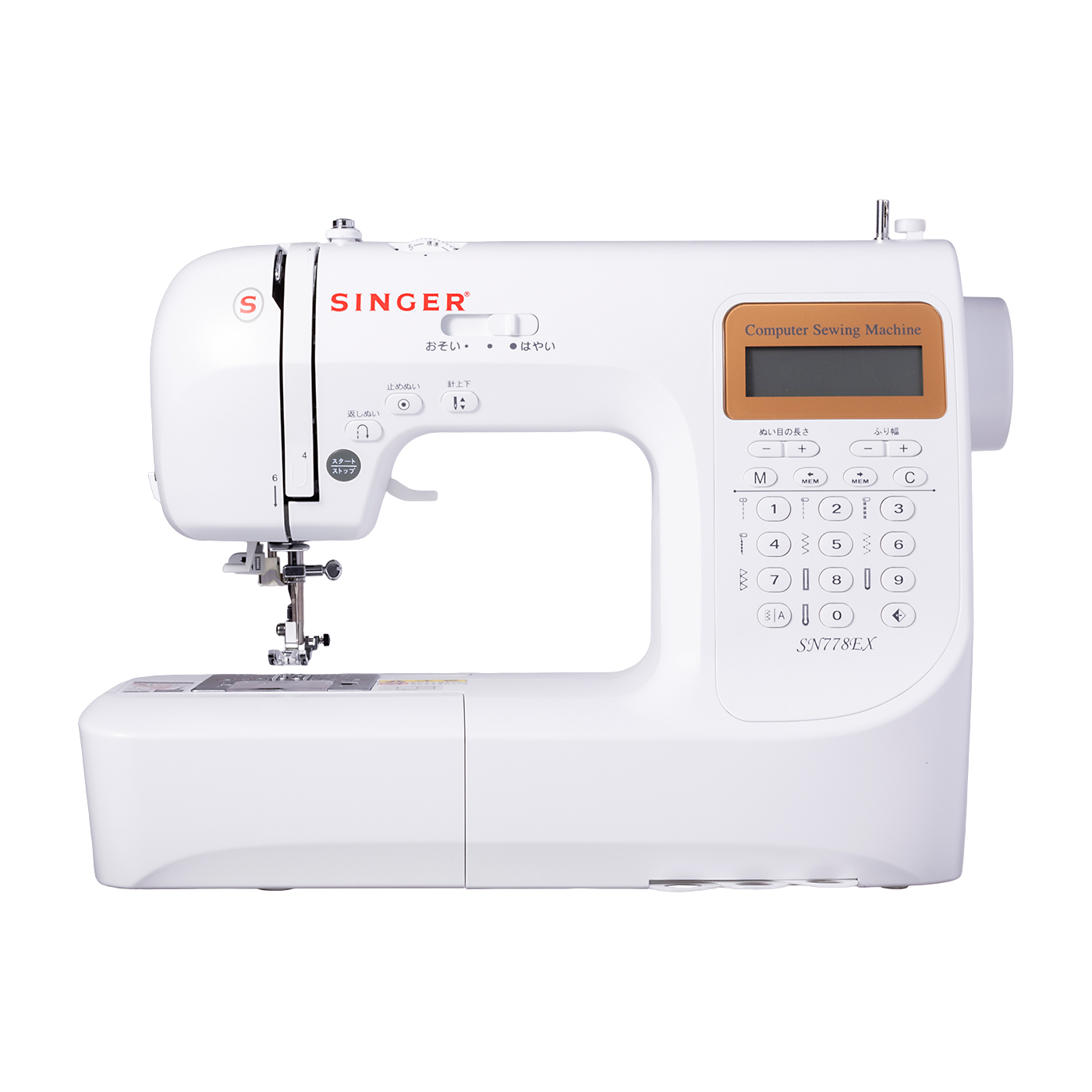 シンガーの「シンガー コンピューターミシン SN778EX」は、入園・入学グッズを作りたい人におすすめです。検証したなかでは珍しくひらがな・簡単な漢字・英数字が縫えるうえ、縫い模様の種類も65種類と非常に豊富。ファスナー押さえやボタンホール押さえも付属しており、手作りバッグ・きんちゃく袋に名前や模様を入れるのにぴったりでしょう。洋裁の専門家が実際に生地を縫ったところ、ほとんどの布地で美しい仕上がりに。普通地のボタンホール縫いではやや粗い部分もあったものの、とくに厚地だと波打ちなくきれいに縫えました。作業スペースも十分で、布の送りやすさも問題ありません。自動糸調子機能はないものの、糸掛け・糸通しは一般的なミシンと同様の方法で行えます。糸のセット方法がDVDでわかるのも魅力です。フットペダルやワイドテーブルつきで初心者でも使いやすいでしょう。持ち手とハードケースがつき、片づけやすい工夫も見られます。重量は5.8kgと軽くはないものの、頻繁に移動させないなら気にならないでしょう。ただし、実際の稼動音は約66.6dBと大きめで、脱水時の洗濯機ほどのうるささ。音はやや気になるものの、子どもの組や名前を縫ったり世界に1つだけの持ち物を作ったりしたい人にはぴったりです。