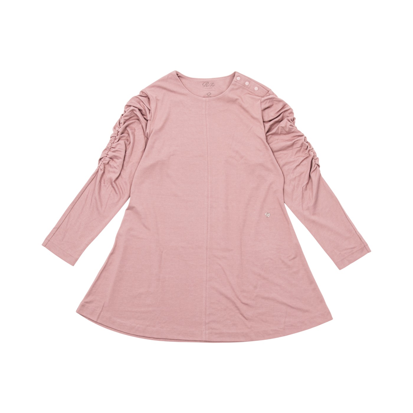 MTGの「ReFa バイタルテックモイストスムースギャザースリーブプルオ—バー RW-AI-P60C-L」は、華やかなギャザースリーブがポイントと謳うリカバリーウェア。ゆるやかなAラインでお腹や腰まわりをカバーできると謳うデザインです。カラーは3色あり、SからLLサイズまで展開しています。とろみのある生地が使われていますが、重さはあまり気になりませんでした。モニターからは「お腹や裾がゆったりしていて、締め付け感がない」といったコメントが多数。肌触りもツルっとしていて心地よく、1日中快適に着用できそうです。吸水速乾性の検証では、8回洗濯後も水分を素早く吸収しました。一方、速乾性は低く、汗が蒸発しにくいといえます。蒸れが気になる可能性があるので、夏場や体を大きく動かすシーンでは着用を控えるのが無難でしょう。耐久性もやや低く、数回洗濯をすると毛玉がつきやすいという結果に。毛玉のつきやすさは気になるものの、ReFaならではの上品なデザインは魅力的。カジュアルすぎないリカバリーウェアがほしい人や、パートナーへのプレゼントを探している人はぜひ検討してみてくださいね。