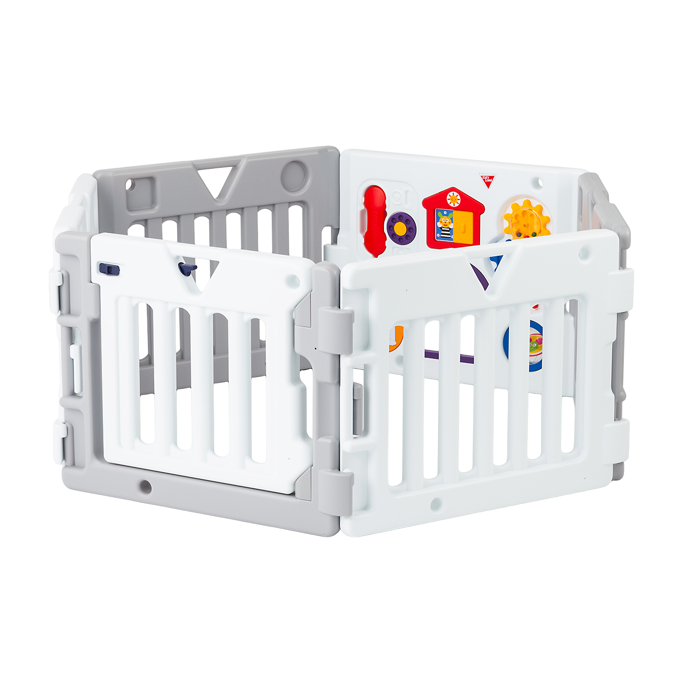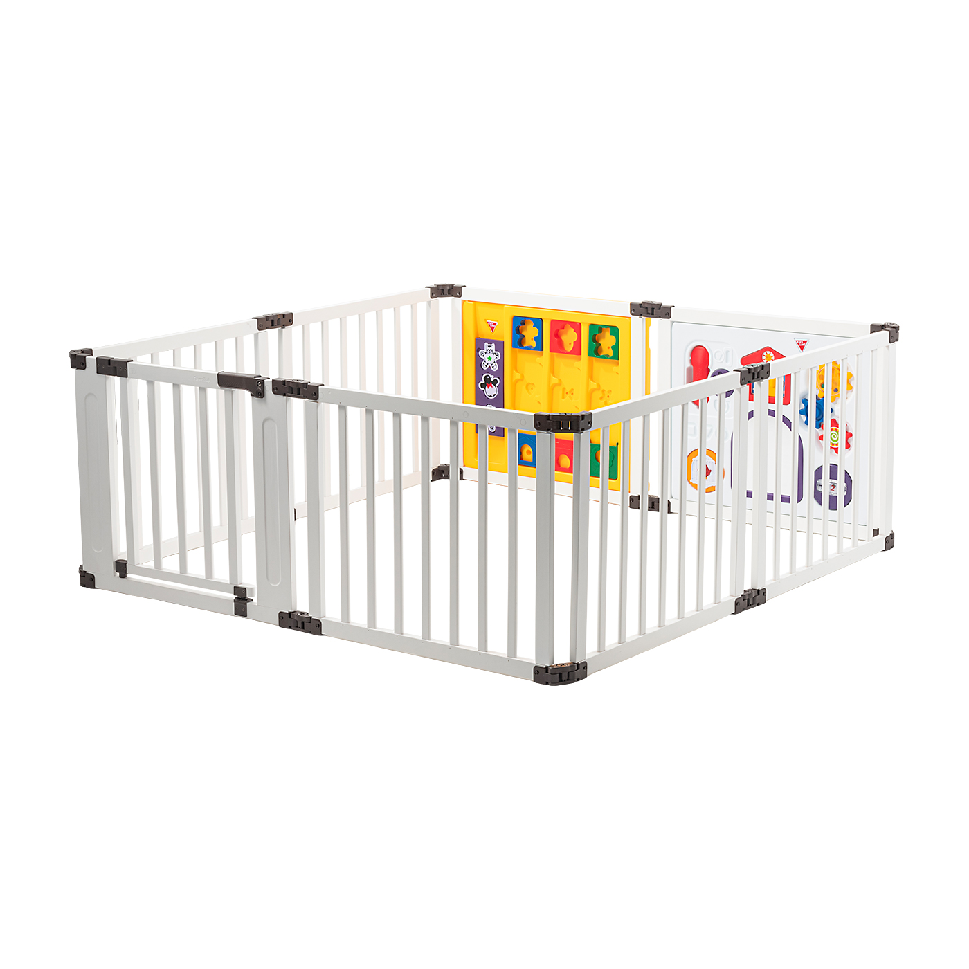 日本育児の「ミュージカルキッズランドDXⅡ」は、シリーズ累計販売台数が40万台を超える(※2023年11月時点)人気商品。6つの仕掛けがついたおもちゃパネルが1枚付属し、子どもが楽しく遊べるつくりです。工具を使わず組み立てられる点がメリット。パネルを差し込むだけですぐ設置できるので、普段は収納しておきたい人にも向いています。扉は片手で開閉できるため、子どもを抱っこしたままでも出入りしやすいでしょう。壁面は56cmとあまり高くないものの、足をかける隙間がないので子どもが自力で抜け出す可能性は低いといえます。中の見えやすさの観点では、おもちゃパネルに隙間がなく視界が遮られる点が気になりました。また、摩擦力が低いため、子どもが激しく揺すったりぶつかったりするとパネルが大きく動く懸念があります。子どもが楽しめて、抜け出しにくい商品を探している人は検討してみてください。