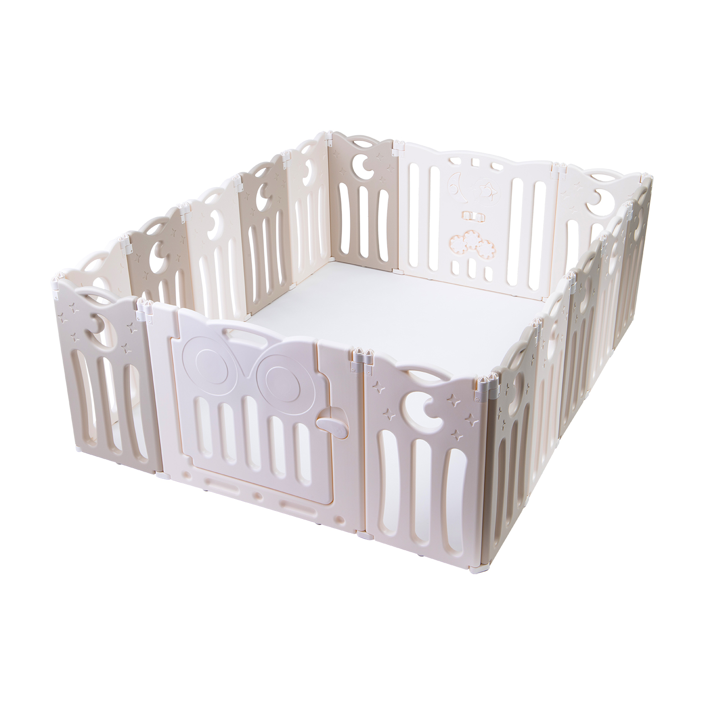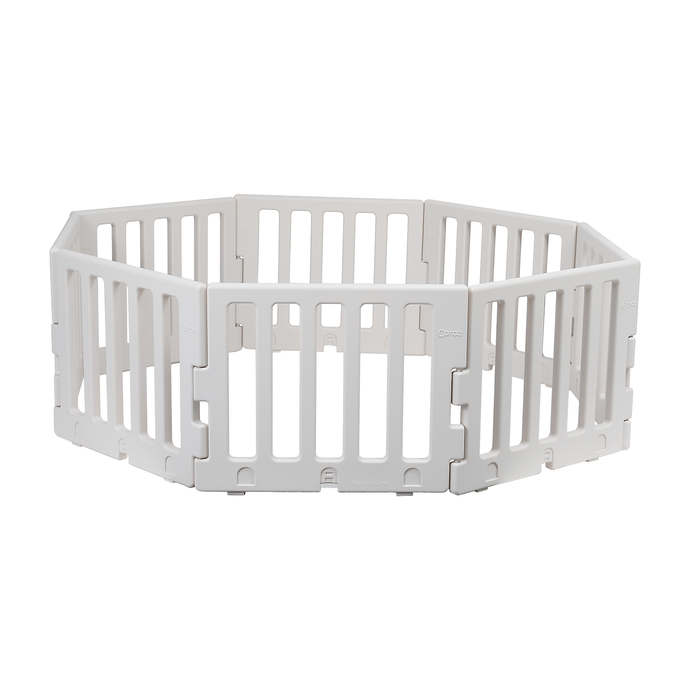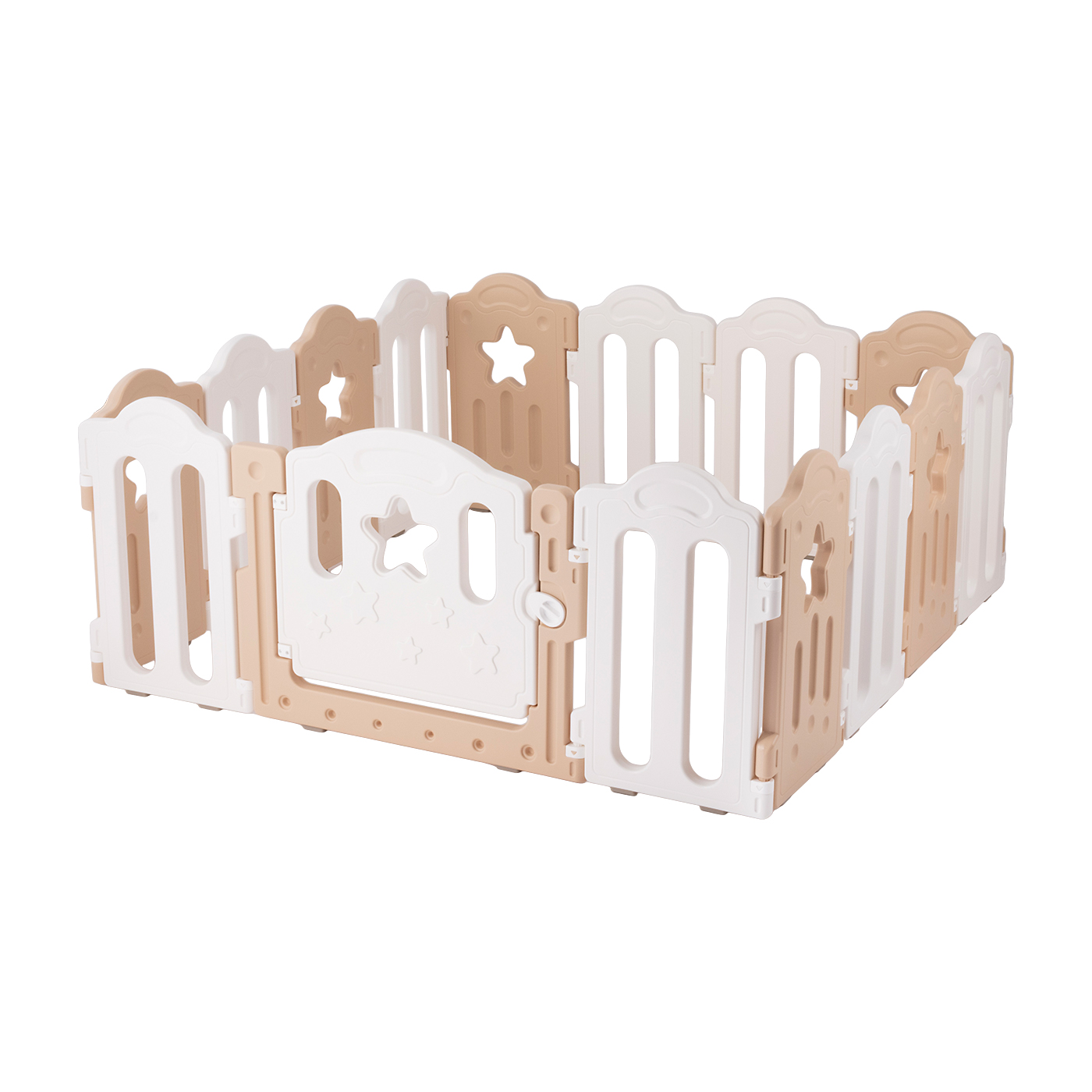 CARAZの「リーフ ベビーサークル」は、ソフトな雰囲気のリーフパターンをアクセントにしたデザイン。サークルのサイズは5種類で、カラーは2色から選べます。扉がついており、立ったまま片手で開閉できたので、手がふさがっていても出入りしやすいでしょう。柵はプラスチック製であまり細くありませんが、全面に隙間があり中の様子がよく見えます。家事や仕事をしながら、しっかりと子どもの様子を確認できるでしょう。また、壁面の高さが61cmあり、子どもが簡単には乗り越えられない仕様です。摩擦力が強く安定感があるため、激しく揺すったりぶつかったりしてもずれにくいといえます。組み立てには工具がいらず、パネルを差し込んでつなげるだけなので簡単に設置できますよ。設置しやすいうえに子どもを見守りやすく、総じて使い勝手は良好です。同社のマットと組み合わせやすく設計されているので、一緒に使いたい人はぜひ購入を検討しましょう。