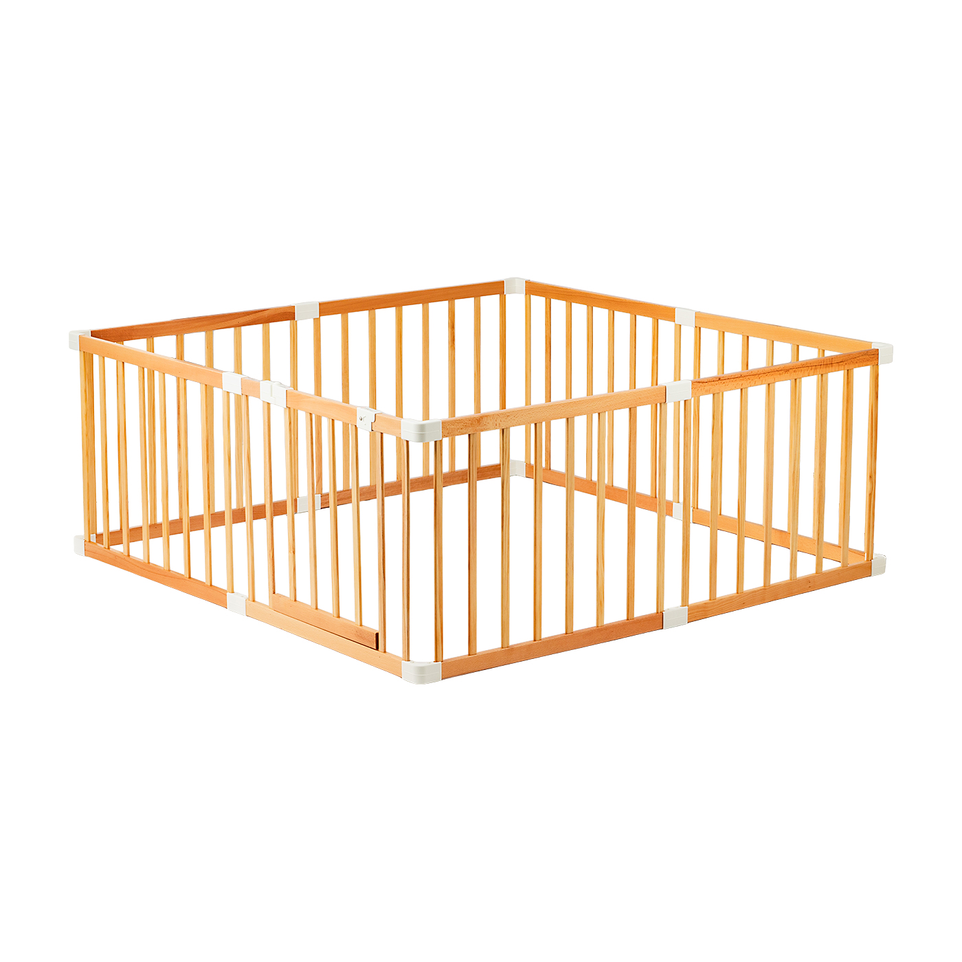 KnKの「iFam ベビーサークル ドアつき」は、白樺の木をイメージした高級感のあるデザインが特徴で、カラーはホワイトとバーチベージュの2色展開です。足をかけられる隙間があるものの、壁面の高さが63cmと高く、子どもが抜け出しにくい仕様です。また、摩擦力が強く動かしにくい構造であるため、子どもが揺すってもずれにくいでしょう。扉は立ったまま片手で簡単に開けられるため、子どもを抱っこしながらで開閉しやすいといえます。柵1本1本が細いとはいえませんが、全面に隙間があるので中の様子は見えやすい印象。工具なしで組み立てできるものの、滑り止めやつなぎ目のパーツの取り付けが必要なため、パーツ数が多いのは惜しい点でした。大人も入れるサイズで、兄弟が増えた際は上の子どもの活動場所としても使えます。組み立ての手間はありますが、使いやすさや安全性を重視するなら候補に入れてくださいね。