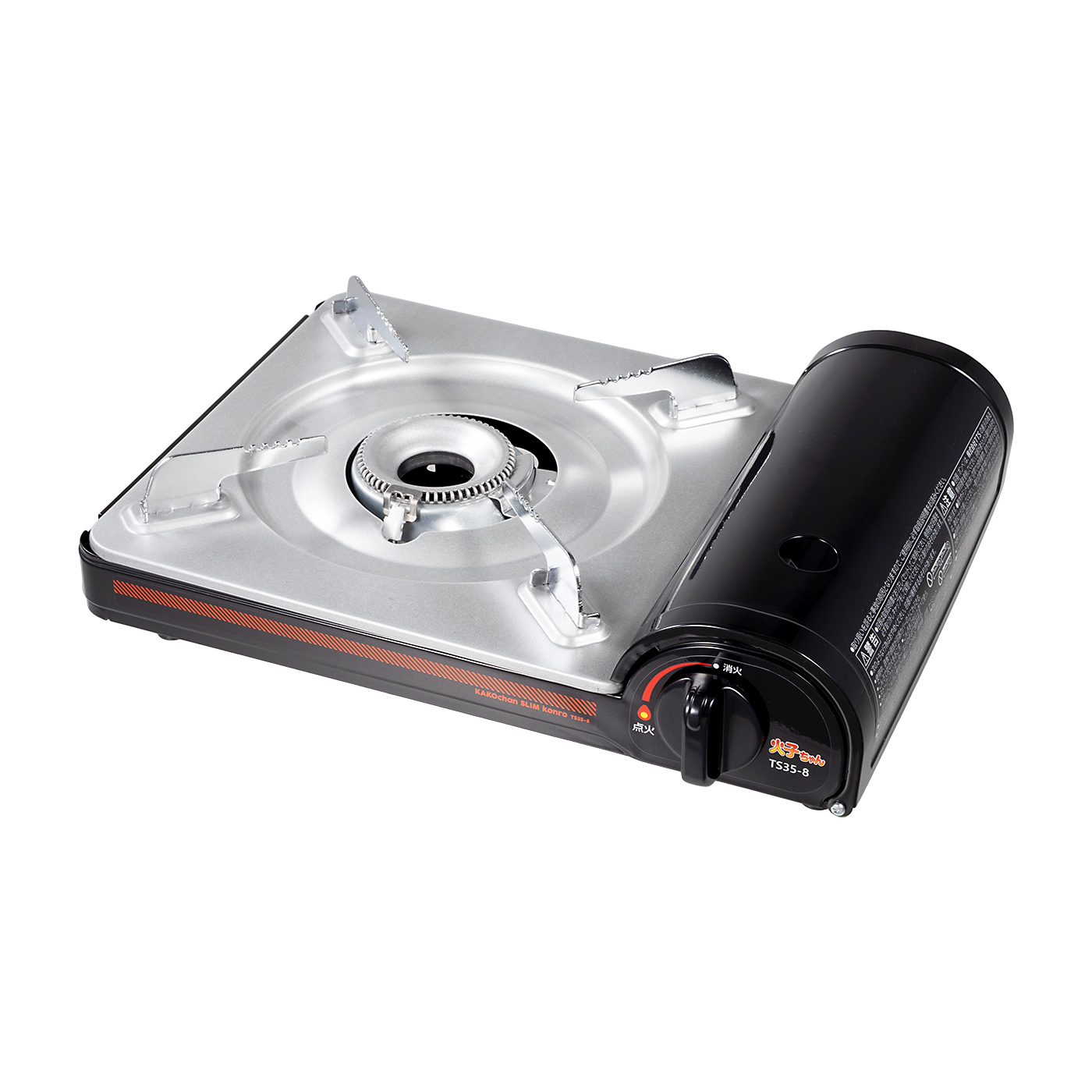 TTSの「カセットコンロ 火子ちゃん」は、鍋料理のような卓上調理で使いやすいものがほしい人におすすめです。本体の高さが7.2cmと低く、座ったままの状態でも鍋の中が見えて具材を取りやすいのがメリット。火力の表示もわかりやすく、細かい火加減の調整が必要なときにも重宝するでしょう。3.5kWの高出力で火力も優秀です。水温20℃の水1Lを最大火力で加熱したところ、4分35秒と短時間で沸騰しました。強火での連続燃焼時間は1時間2分と長くはないものの、鍋パーティの途中でガスが切れてしまうことはないでしょう。ボンベの着脱はマグネット式で、万が一調理中に交換することになっても素早くできます。五徳は安定感があるシンプルな形状で、重たい土鍋を載せてもグラつきにくいでしょう。向きを合わせる必要がありますが、簡単に取り外しも可能。汁受けは山型で煮汁が本体に入り込むのを防げます。圧力感知安全装置や容器装着安全機構など、安全装置も搭載。高火力や座ったままでも調理がしやすい低いつくりが魅力なので、卓上調理で使いやすいカセットコンロがほしい人は検討してみてください。