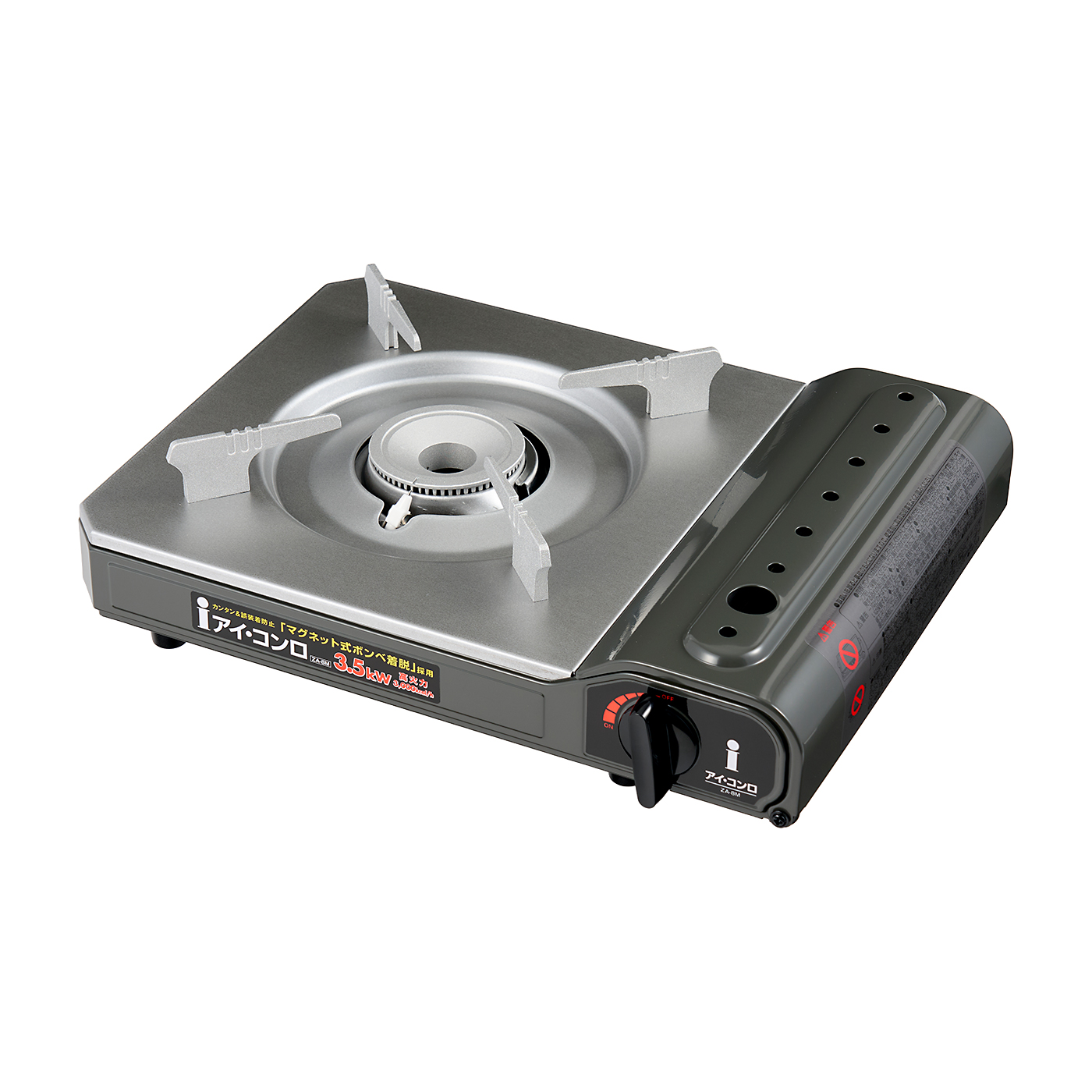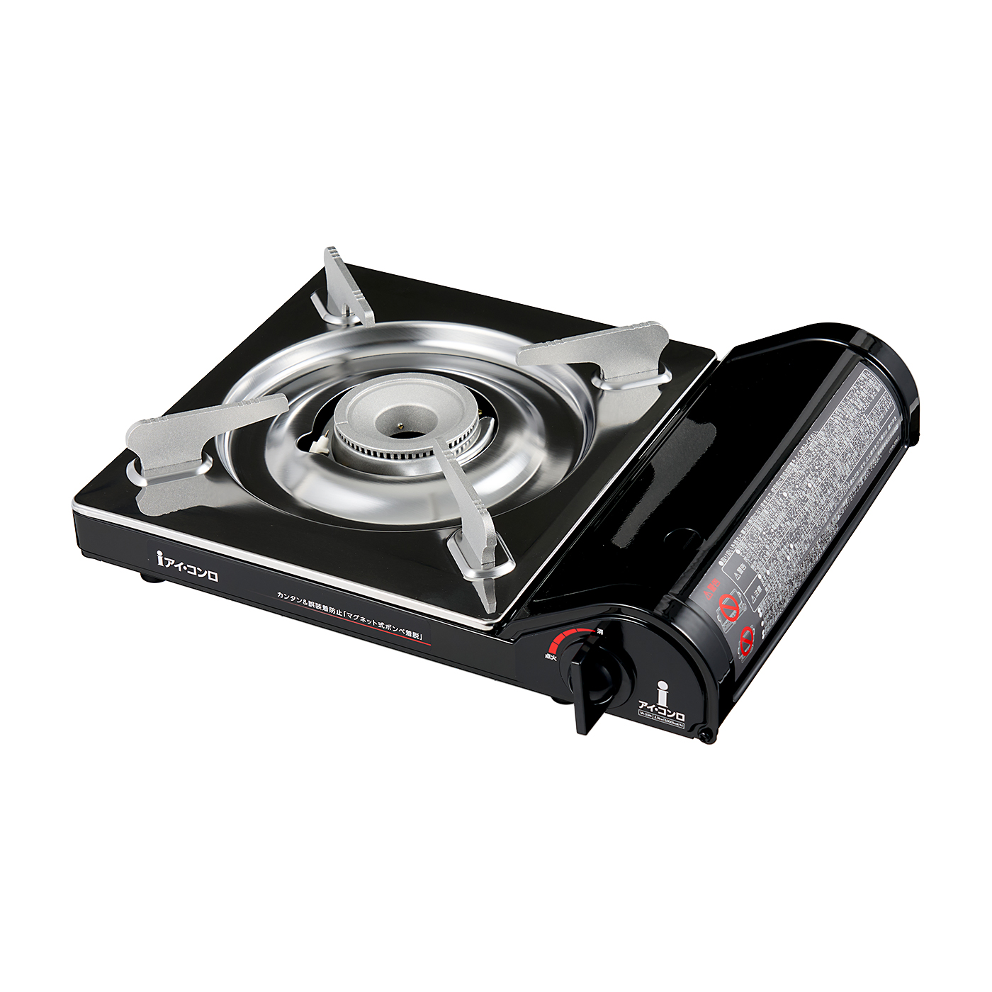 アイ・システムネットワークの「アイコンロ」は、火力が強くお手入れも簡単な手頃なカセットコンロがほしい人におすすめ。高火力で使い勝手も良好ながら、3,000円程度で購入できます。実際に20℃の水1Lを最大火力で加熱すると、わずか4分36秒で沸騰。高火力だからか強火での連続燃焼時間は1時間5分と長くなかったものの、ボンベの着脱はワンタッチでできるため交換は簡単です。火加減の目盛りが視覚的にわかりやすいデザインで、細かい火力調節もしやすい点もメリット。つまみは大きく回しやすいうえに、五徳の安定感も問題ありませんでした。一方、本体が9.5cmと高いつくりで、鍋の具材を取るときに腰をあげる必要はあるでしょう。五徳はシンプルな形状で細かい箇所がないので、お手入れは簡単。取りつけるときに向きを合わせる必要はありますが、持ちあげるだけで取り外せます。圧力感知安全装置や容器装着安全機構など、重要な安全装置もしっかり備わっていました。連続燃焼時間はやや短いですが、火力やお手入れのしやすさは上位商品に劣らない実力です。大きな欠点は見当たらないため、コスパ重視で選ぶ人におすすめですよ。