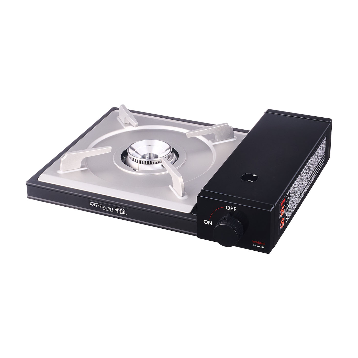 岩谷産業の「カセットフー 雅SLIM CB-WA-64」は、高火力で燃費もよい、スタイリッシュな見た目のカセットコンロがほしい人におすすめです。火力の強さ・連続燃焼時間の長さは申し分なし。ボンベをセットする部分はスクエア型で、デザイン性の高さも魅力です。水温20℃の水1Lは、わずか4分36秒で沸騰したので、素早く調理したい人にはうってつけです。さらに、強火での連続燃焼時間は1本のボンベで1時間32分と、高火力なわりに長く使用できました。ボンベを取り替える手間を省きやすく、楽しい食事の時間に水をさすこともないでしょう。五徳はシンプルな形状で、簡単に汚れを拭き取りやすく好印象です。長方形なので向きを見て取りつける必要はあるものの、持ち上げるだけで取り外しができます。山型の汁受けは本体に煮汁が入りにくい形状で、手入れが手軽。圧力感知安全装置・容器装着安全機構といった基本的な安全装置もすべて搭載しています。土鍋を載せても五徳はぐらつきにくく、高さは7.2cmと低めの設計。安定性が高いうえに鍋の中身が見えやすく、食材が取りやすいといえます。ボンベはマグネット式で着脱も簡単。火加減の目盛りはオンオフのみのシンプルなタイプなので細かい火加減の調節は目視で行いましょう。高火力かつ高燃費でデザイン性も高い商品なので、性能も見た目も重視したい人はぜひ検討してみてください。