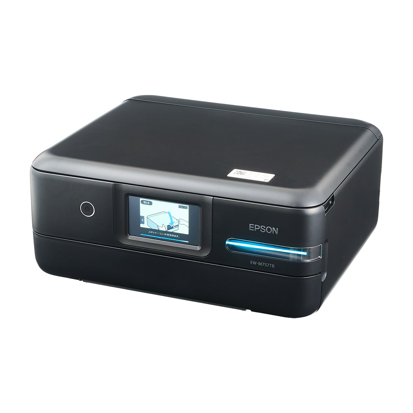 エプソン販売の「インクジェットプリンター EW-M757TB」は、文書も写真もお得に印刷したい人におすすめ。エコタンク搭載でランニングコストが安く、カラー文書の印刷コストは1枚あたり標準容量で約3.8円、大容量で約3.5円と経済的です。旧モデルの「EW-M754T」はWindows XPとWindows Vistaも対応していましたが、本品はWindows7以降のみに対応。カラーバリエーションも従来の「ホワイト」「ブラック」に加えて、新色のピスタチオグリーンを含む3色展開です。タッチパネルで直感的に操作でき、スマホ連携やクラウドサービスへの送信にも対応。セットアップ時のWi-Fi接続もQRコードで簡単に行えるため、誰でもスムーズに使い始められるでしょう。印刷の速さは満足できるレベルで、モノクロ印刷10枚は平均約66秒、カラー印刷10枚は平均約96秒、写真印刷は平均約154秒で完了しました。仕事の書類から写真までスムーズに印刷可能です。文書印刷では、複雑な漢字である「鷹」は黒文字なら11ptから、白抜き文字だと14ptから滲みや潰れの少ない仕上がりに。写真印刷は紅葉の発色やコントラストが良好ですが、海の写真は青が軽く、雲の立体感がやや弱く感じられました。稼動音は平均で約66.3dBと大きめ。静音性が高いとはいえず、夜間や朝方に大量印刷すると騒々しく感じる場合もあるでしょう。とはいえ、ランニングコストの安さ・使いやすさ・印刷速度の速さは魅力。写真印刷のクオリティや静音性にやや物足りなさがあるものの、文書印刷を頻繁に行う人やコスパを重視する人にはぴったりでしょう。