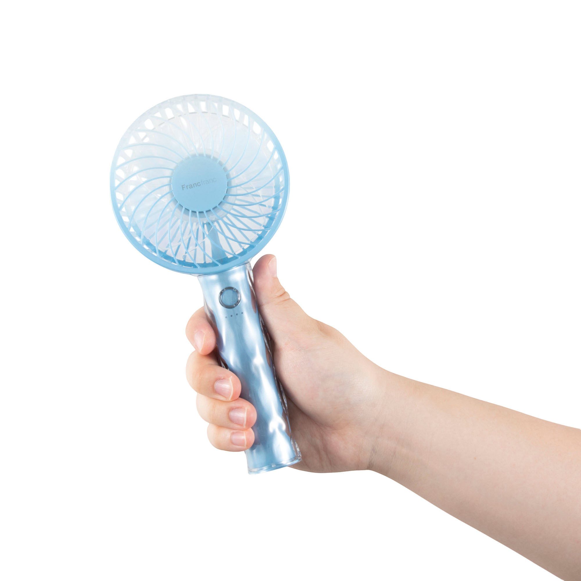 Francfrancの「FRAIS ハンディファン」は、同メーカーが定番モデルとして販売しているハンディファンの2025年モデル。電源オンの仕組みがボタン長押しに変更され、カバンのなかで誤作動を起こしづらくなりました。また、新たに持ち手がウェーブ状になったデザインを展開しています。