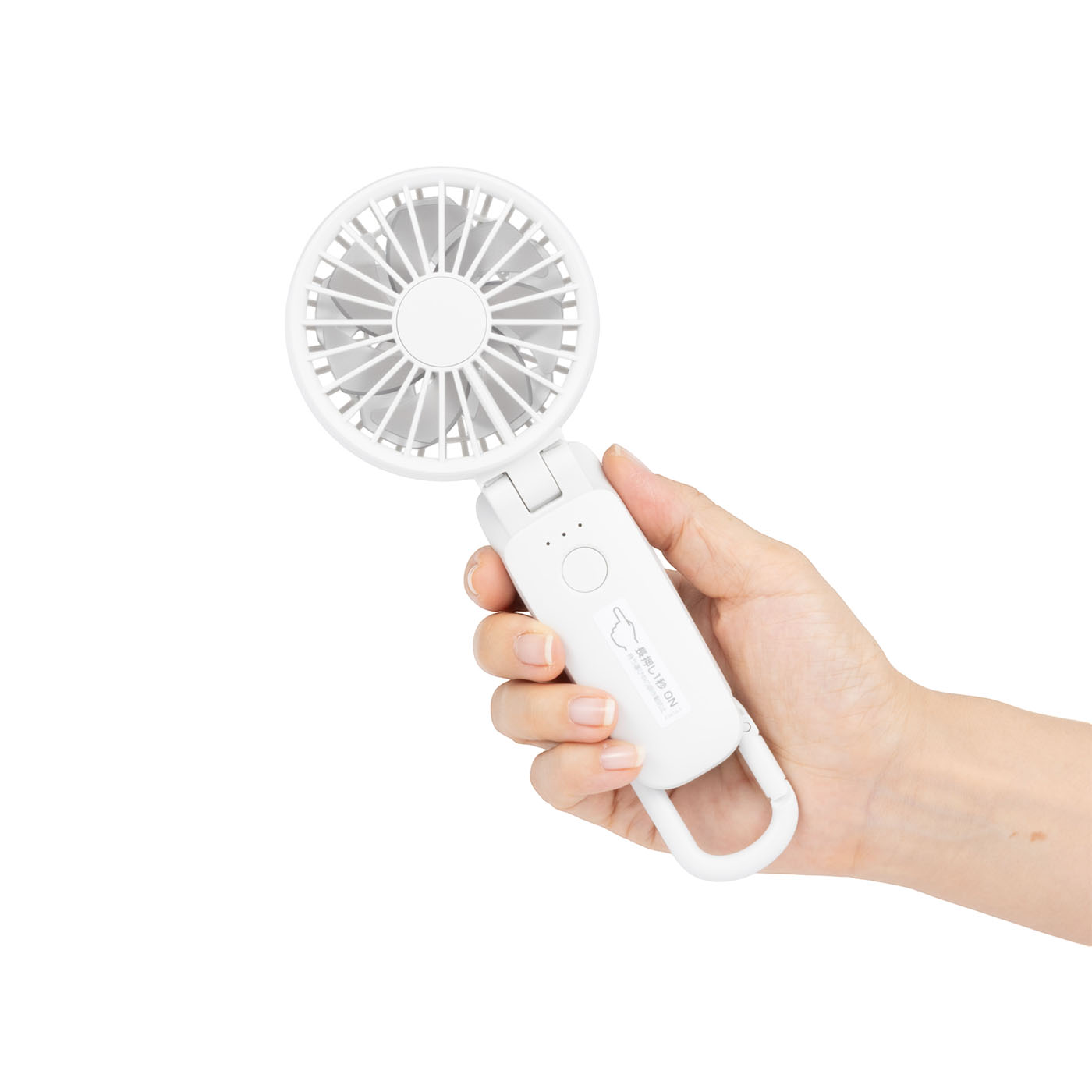 ヒロ・コーポレーションは、日用品や季節家電を中心に手頃な価格帯で商品を展開している日本のメーカーです。「100段階強風ペルチェハンディーファン」は、肌を直接冷やせる冷却プレートを搭載したモデル。卓上スタンドにはフックがついており、スマホスタンドとしても使用可能です。