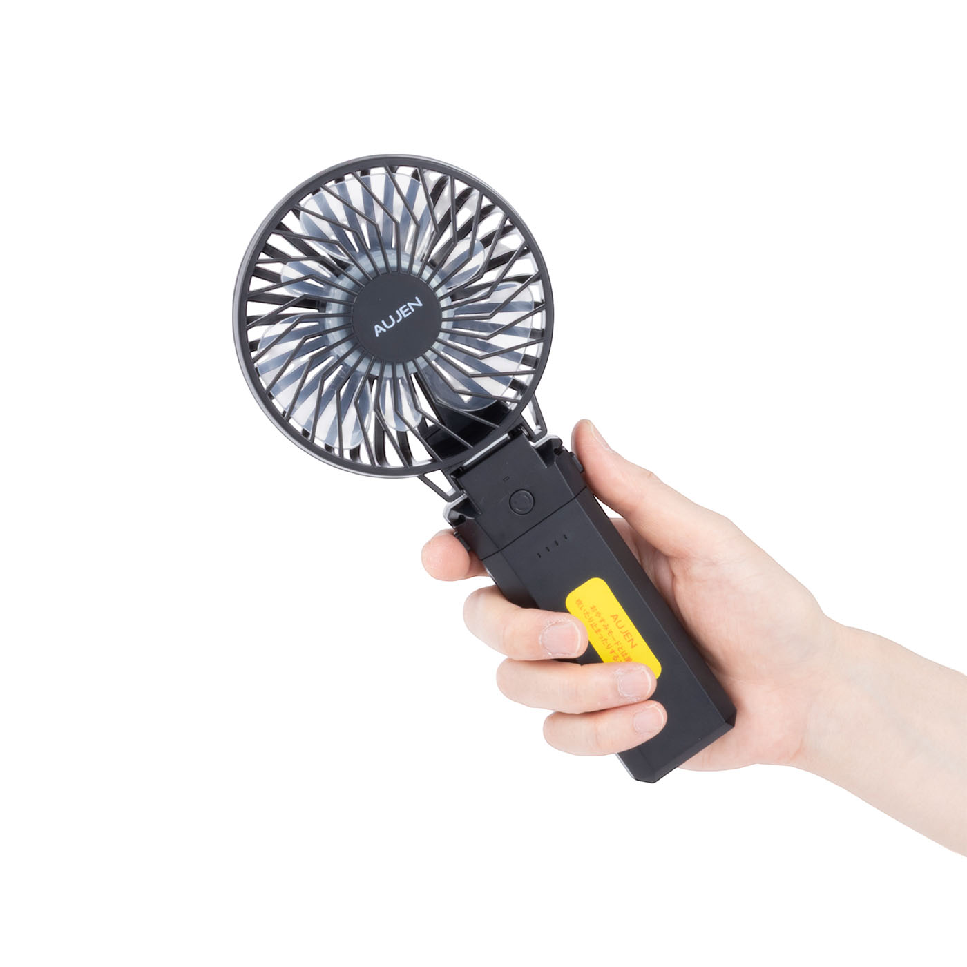 Amazonを中心に人気を集めるAujenの「携帯扇風機」は大型ファンタイプで、持ち手を分離してモバイルバッテリーとしても使用可能。ファンの前面カバーを取り外し可能で、羽のホコリを取りやすい仕様です。ブルー・ブラック・ホワイトの3色を展開しています。