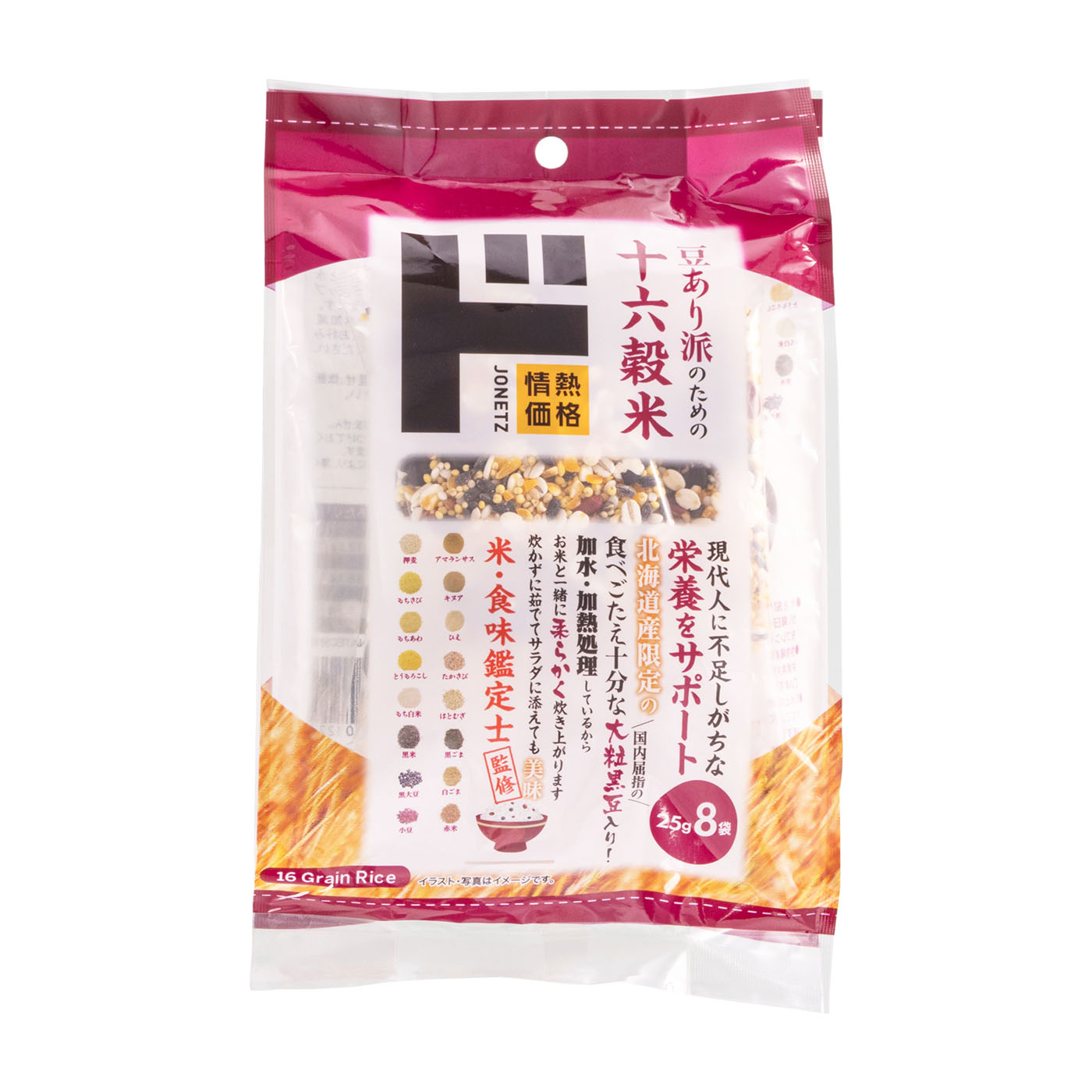 パン・パシフィック・インターナショナルホールディングスの「豆あり派のための十六穀米」は、雑穀米ならではのおいしさを味わいたい人におすすめです。モチモチとした弾力のある食感が特徴で、試食したモニターからも「モチモチしていて、柔らかくておいしい」という声が挙がりました。雑穀や豆の硬さがほどよく、香りのクセもほとんどないため、白米と調和しやすいのが魅力です。ハトムギやあわなど美容サポートが期待できる成分が豊富に含まれています。必須アミノ酸が豊富なアマランサスやキヌアも入っていて、筋トレサポートとしても活躍。ただし1食あたりの食物繊維は1.38gで摂取基準の理想2.11gよりも低めなので、ほかの食品で補うようにしましょう。個包装タイプで、計量せずにそのまま炊けるのが便利。浸水させる必要もないので、いつものお米と同じ感覚で手軽に炊けますよ。おいしさ・栄養バランス・手軽さを兼ね備えていた本商品。とくに雑穀のモチモチ感や豆のホクホク感を楽しみたい人にはうってつけです。本商品は大粒黒豆が入ったタイプですが、豆なしタイプもあるので、気になる人はチェックしてみてくださいね。