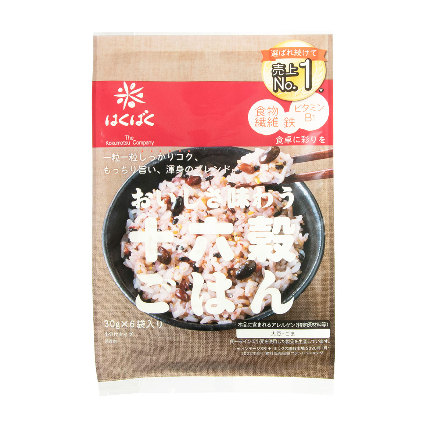 はくばくの「おいしさ味わう十六穀ごはん」は、30gずつに小分けされている商品。穀物ならではの豊かな香り・食感・味わいを楽しめると謳っています。食感は弾力があり好みが分かれる結果に。「おこわのようなモチモチ感があり食べ応えがある」と好印象を抱いたモニターがいた一方、「弾力が強く、硬さを感じた」という声も挙がりました。また、豆が大きく雑穀のクセが強い点も気になります。赤飯のような食感・風味が好きな人には向いているかもしれません。食物繊維量は1.90gと、1食の理想摂取基準の理想値2.11gは超えないものの、目標値1.20gは超える結果に。筋トレサポートが期待できる成分を含むアマランサス・キヌアや、美容サポートに役立つハトムギ・あわ・黒米・赤米も入っており、栄養バランスが取れています。炊き方は、白米2~3合に対し、本品1袋を混ぜるだけです。個包装で計量不要なので、手軽さは申し分なく、空気に触れないため鮮度も保てます。モチモチ食感で噛み応えがあるため、満腹感を得たい人におすすめです。