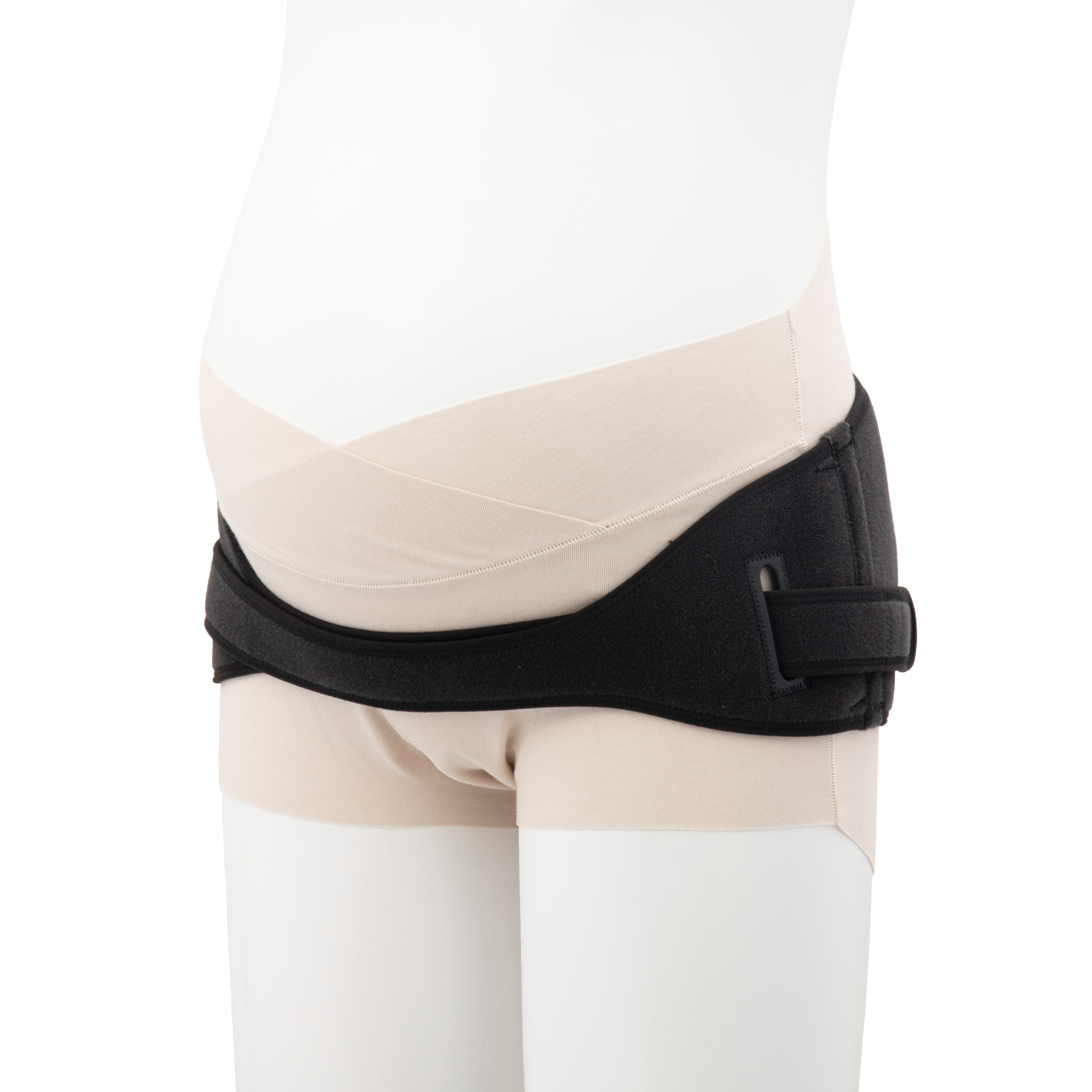 ピジョンの「妊娠中から使える骨盤ベルト」は、助産師とピジョンが共同開発した商品。立体設計でお尻にフィットすると謳っています。ベルトの形が上下に分かれているうえ、お尻の部分のベルトにクロス加工が施されており、しっかり骨盤を掴まれている感覚を得られました。また、内側のベルトを留めたのち外側のベルトで締めつけ具合を調整しやすいのでずれにくいのも利点。パッケージのQRコードからは装着方法の説明動画を確認できます。説明動画を見ながら装着すれば間違えるリスクは少ないでしょう。また、ベルトの上部にタグがついているので上下を確認しやすいですよ。一方、歩くのみであれば食い込みは気になりにくいですが、前側ベルトが太めなので座った際にお腹や股に食い込みやすいのはネック。腰の部分はメッシュで熱がこもりにくいものの、恥骨部分はベルトが二重になることから蒸れやすいことが判明しました。座る際に外す必要があるのは手間ですが、骨盤がガッチリ固定されるためとくにアクティブな妊娠期間を過ごす人におすすめの商品です。