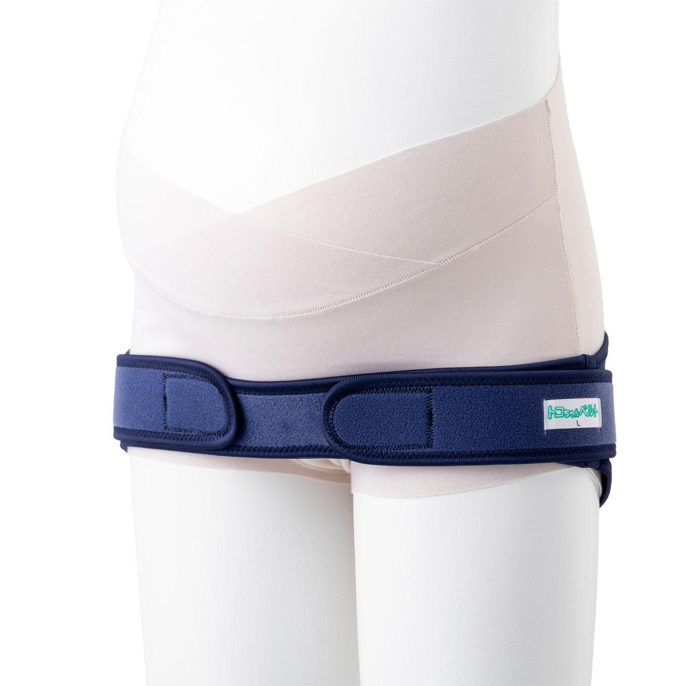 青葉の「トコちゃんベルト トコちゃんベルトⅡ」は、妊娠初期~産後1年ほどを目安に使用を推奨している商品。別売りの腹巻きを使用することで、ずれを軽減できると謳っています。今回は腹巻きを着用して検証を行いました。ベルト後部が上下に分かれてなく骨盤を圧迫するのみで、包まれるようなサポートは得られませんでした。しかし、一部に伸縮性があるベルトでしっかり締められるうえ、ずれにくいのはうれしいポイントです。説明動画があり装着方法を確認しながら装着できるのでつけ間違いを防げますよ。腹巻と併用する際の使用方法も丁寧に解説されていました。前側ベルトが細めで歩いたり座ったりしても食い込みは気になりにくいでしょう。ただし、生地が硬いうえベルトが股部分で重なるので、座った際に圧迫感を覚える可能性があります。腰部分も恥骨部分も通気性は悪いですが、洗濯機を使用できるので汗をかいても手入れをしやすいは利点。ただし、付属の腹巻きは手洗い推奨なので一緒に洗わないように注意してくださいね。