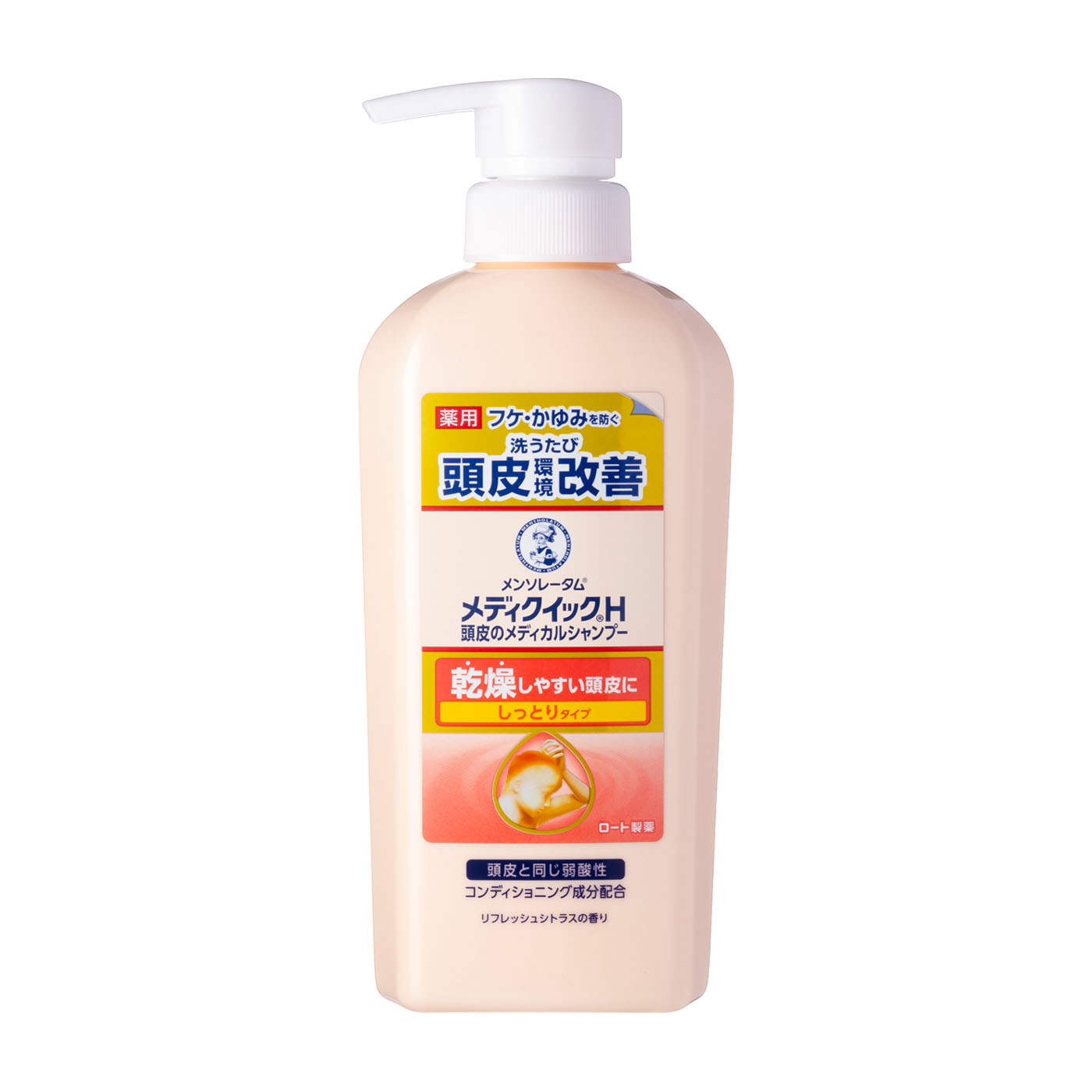 ロート製薬のメディクイックH「頭皮のメディカルシャンプー しっとり」は、乾燥しやすい頭皮向けに開発された医薬部外品のフケ対策シャンプー。抗真菌成分のミコナゾール硝酸塩と肌荒れ防止有効成分のグリチルリチン酸ジカリウム配合で、フケやかゆみを防ぎます。また、敏感肌の刺激になり得る成分が少ないと評価され、肌がデリケートなときも使いやすいでしょう。さらに、泡立ちやきしみにくさ、香りといった使用感に関する項目はすべてモニターから好評で、万人が使いやすいシャンプーといえます。加えて洗浄力も評価が高く、余分な皮脂をさっぱり洗い流しやすいので、脂性フケも使いやすい印象。ただし乾性フケでも使えないわけではないので、皮脂の洗いすぎによる乾燥が気になる人は、頭皮ローションなどで保湿しましょう。フケやかゆみを防ぎつつ、使用感のよいフケ対策シャンプーを求める人におすすめです。