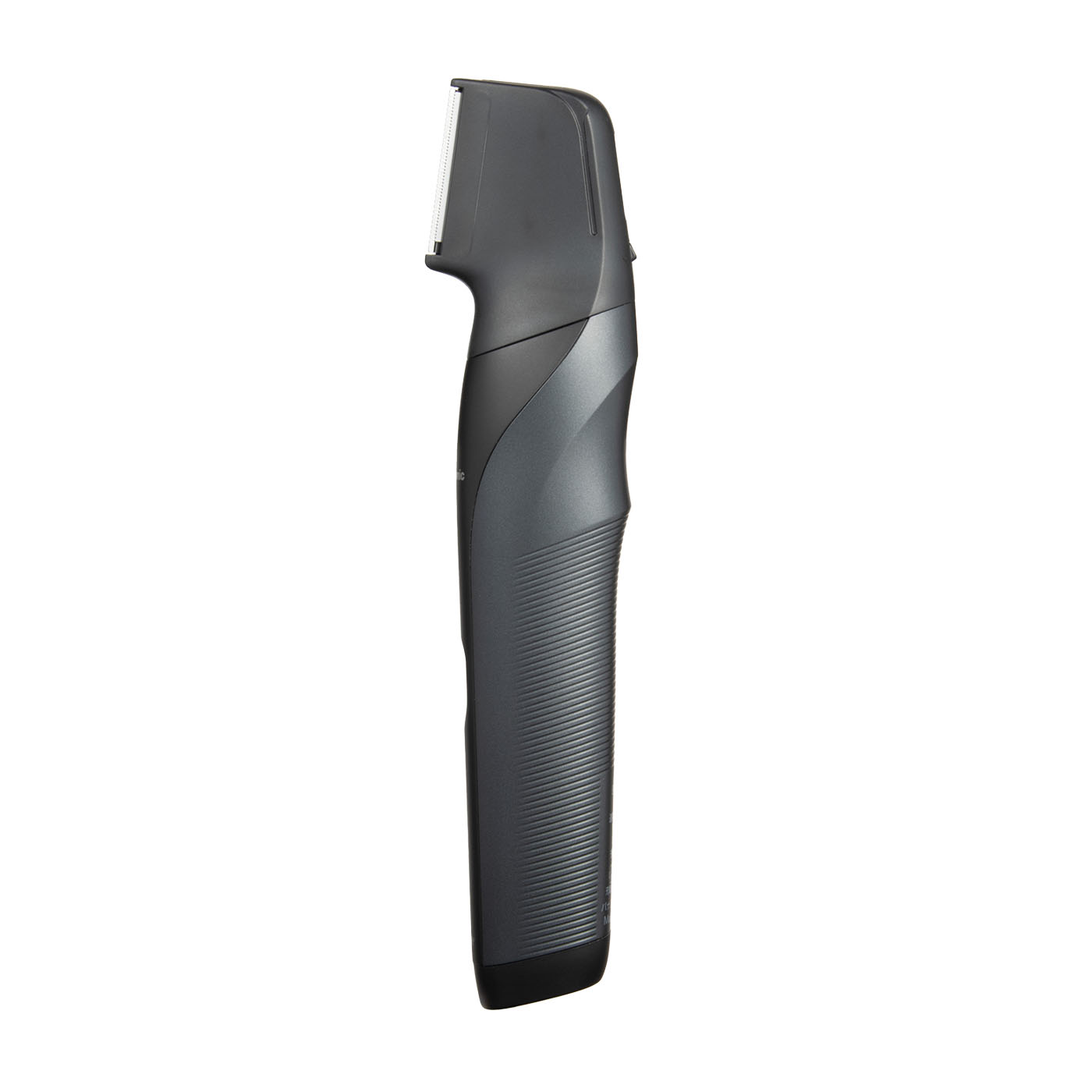 パナソニック「ボディトリマー ER-GK21-K」は、丸い刃先で肌当たりやさしく剃れると謳っている、パナソニックのボディシェーバーのなかでも手が出しやすい価格の乾電池式のメンズボディシェーバーです。直刃の0.1mmか、2mmの肌ガードアタッチメント、さらに3mmの長さそろえアタッチメントの3パターンで使用できます。自分に合った長さがまだわからないボディシェーバー初心者にはあまり向いていませんが、大手メーカーのなかでは安めの価格帯なので短く整えたい人には向いているでしょう。刃のつけ外しが簡単で掃除しやすいうえに、専用のブラシとオイルがついているのはうれしいポイントです。検証で3mmのアタッチメントを使用したところ、マネキンの髪の毛ではなかなか剃れず低評価となったものの、毛のタイプが異なる4名のモニターに使用してもらった結果、毛がストレートな人は少ない回数で整えられる傾向がありました。握りやすさの検証では高評価を得たものの、I字型で肌に当てる角度に少し注意しながら剃る必要があるため、剃る箇所によっては握りにくいという声も。ふくらはぎなど体の背面に使用する際は握りにくく剃りづらいため、鏡を使うなどして剃り残しがないか確認しましょう。一方、アタッチメントが肌を刃から守り毛が引っ掛かることもなく、肌当たりのよさは高評価だったので、痛みに弱い人にはおすすめのメンズボディシェーバーです。