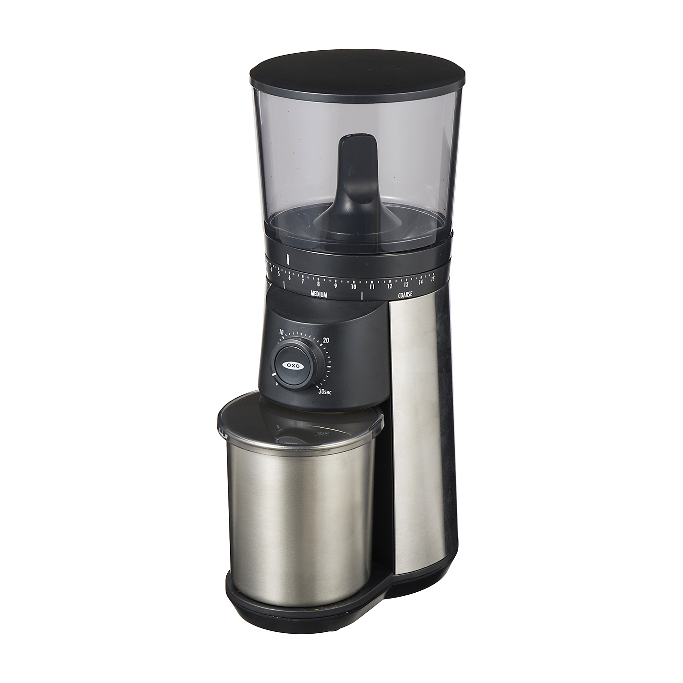 オクソーの「タイマー式コーヒーグラインダー」は、挽き目を43段階に調節できる商品。粗挽きから細挽きまで、コーヒー豆を均一に挽けると謳っています。粒度の均一さの検証では、1杯分(15g)のうち約90%(13.45g)を均等に中挽きにできたため高評価に。中挽きにした粉は全体的にやや粒が大きいものの粒度は整っており、粗すぎる粒や微粉はほとんど見られませんでした。淹れたコーヒーは味わいのバランスがよいうえ、バリスタからは「渋みがほとんどなくて飲みやすい」という声が挙がっています。稼動音は82.2dBとうるさく感じるものの、1杯分(15g)のコーヒー豆を挽く時間は7.44秒とかなり速く、ストレスを感じにくい結果に。手入れのしやすさはまずまずの評価を獲得。ホッパーと粉受けを丸洗いできる点や、ミルの上刃の取り外しに工具が必要ない点は好印象でした。しかし、刃は水洗いできず、掃除用のブラシは別途用意する必要がある点がネックとなりました。とはいえ、短い時間で均一にコーヒー豆を挽ける本商品。ブラシの用意が面倒でなければ検討してくださいね。