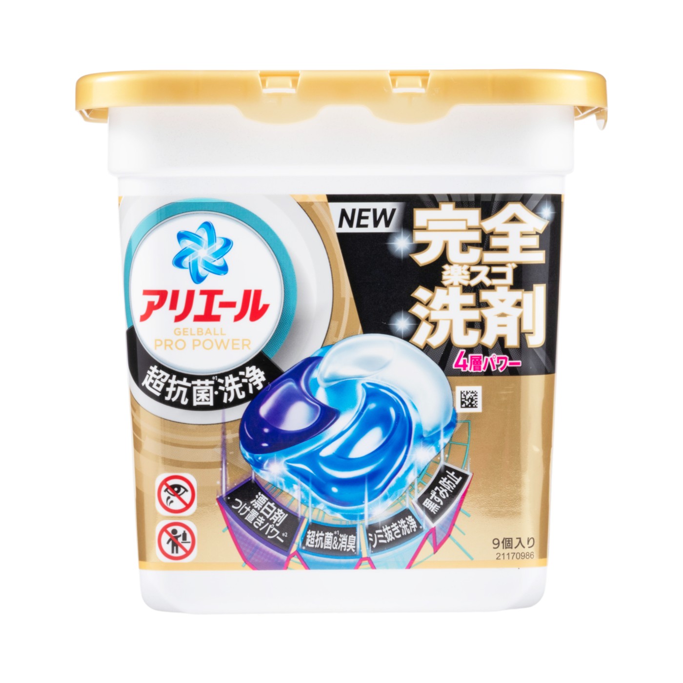 P&Gジャパンの「ジェルボール プロパワー」は、アリエールブランドによるジェルボール型の洗濯洗剤です。4層構造と計量不要の仕様が特徴で、約2倍量の抗菌成分を配合。洗濯槽のカビを防ぎながら、つけ置き漂白と同等の洗浄・消臭力を発揮すると謳っています。洗浄力の検証では、漂白剤が必要と思われるような落ちにくい汚れも十分薄くでき、目立ちにくくさせる結果に。消臭効果も高く、擬似汗臭は感じられず、水で濡らしてもニオイ戻りは確認されませんでした。日常の幅広いシーンで安心して使える洗剤といえます。